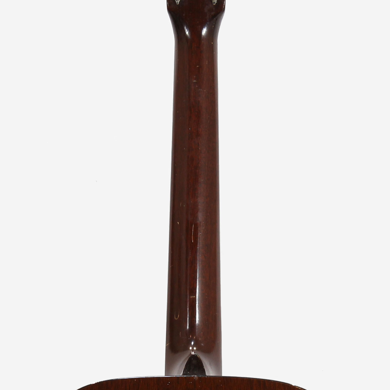 ピックガードの縁に沿って2弦と1弦の間に3~4cm程のマーチンクラックがありパッチ修正済み。ナット、サドル、フレット、ブリッジピンは交換済み。ペグも近年のGrover オープンバック ステタイトタイプに交換されておりブッシュのみ当時ものが使用されています。バック面の6弦側ボディエンド近くに9cmほどのボディ割れ修正痕がありますが塗装も含め修繕済み。その他、年代相応なウェザーチェック、小傷などございますが全体的に見てこの年代のヴィンテージとしてはコンディション良好な個体です。
