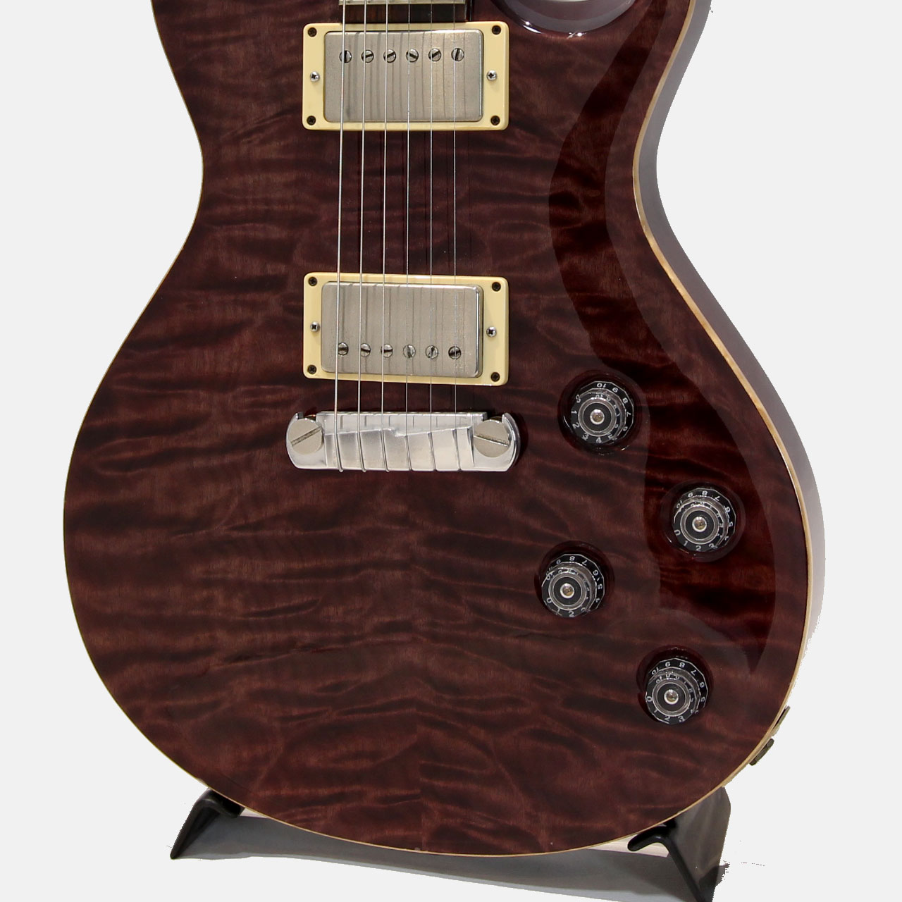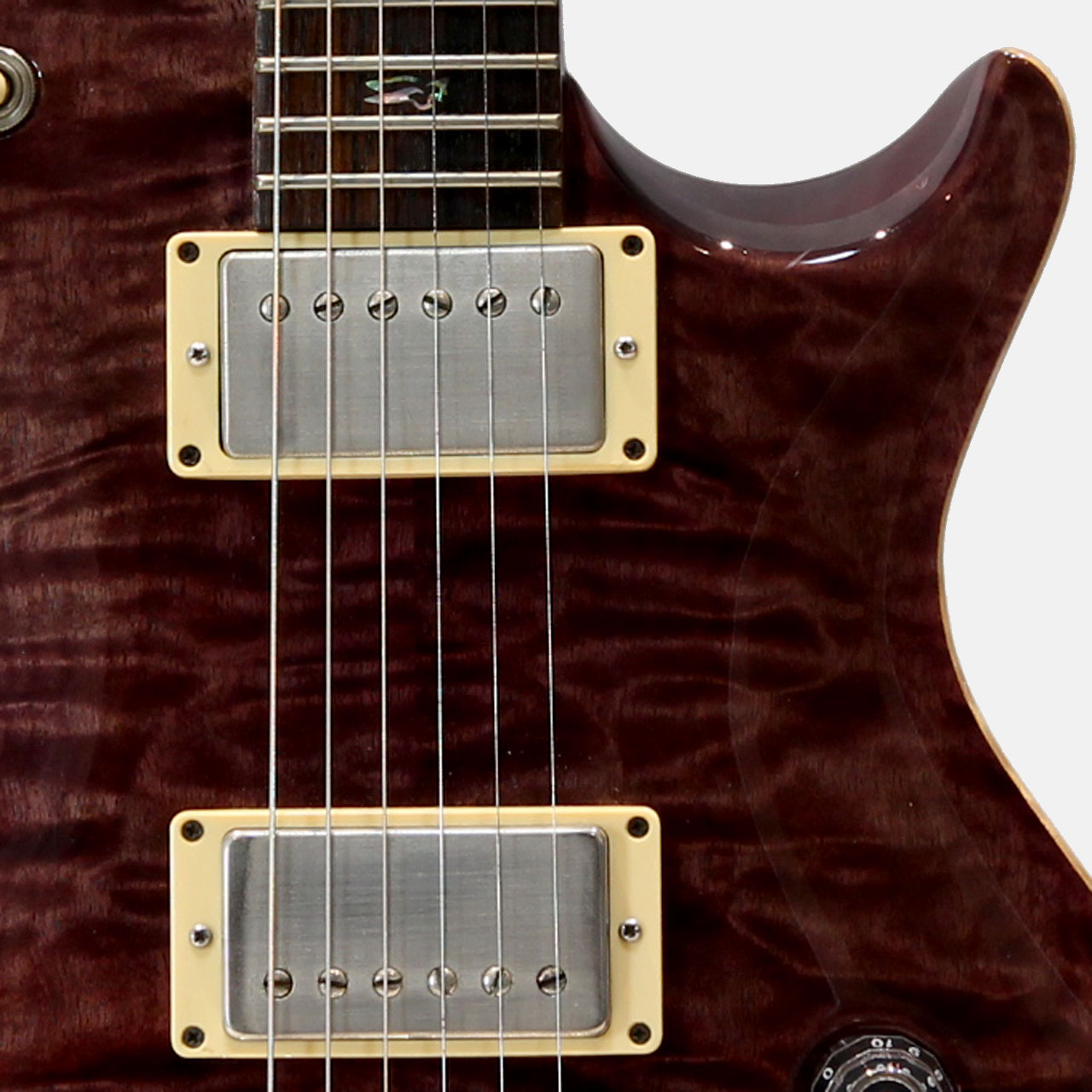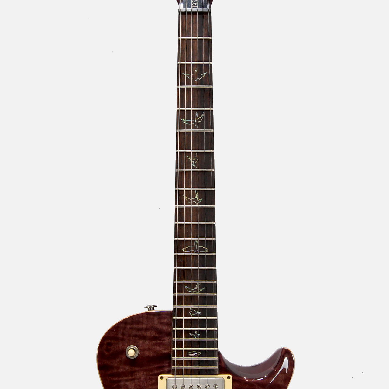 2008 Experience PRSにて発表された本機。絶妙のテンション感を持つ24.5インチスケールでトラディショナルなLPスタイルを基軸にしながらPRSらしいエッセンスが加わりトラッドな無骨さと洗練されたトーンを持つ高いアイデンティティ溢れる1本です。また、限定モデルらしく10topキルトメイプルトップは美しい玉杢でクランベリーカラーと相まって非常に妖美なルックスです。