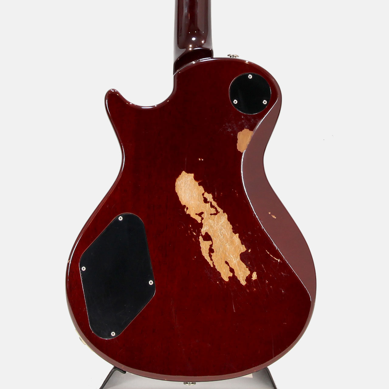 画像の通りバック面に大きな使用感があり、トップのクランベリーカラーにも退色が見られます。フレット関連は擦り合わせが行われておりプレイフィールは良好です。電装関係も問題無いプレイヤーズコンディションの1本です。良く弾きこまれていますのでプレイするにピッタリです。