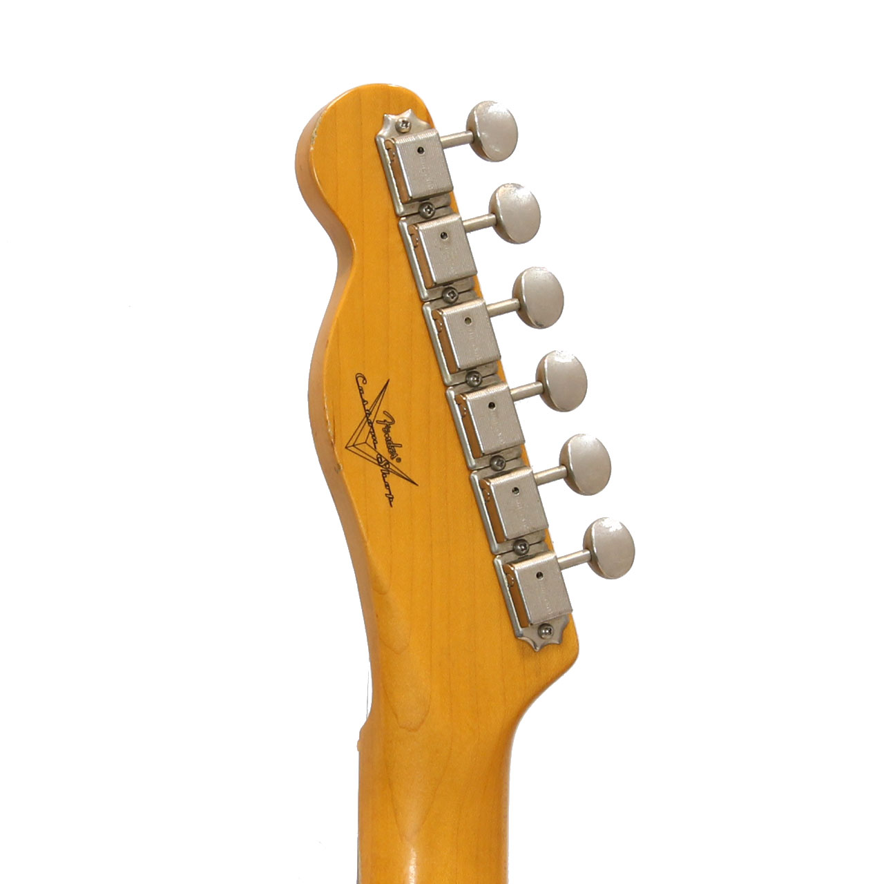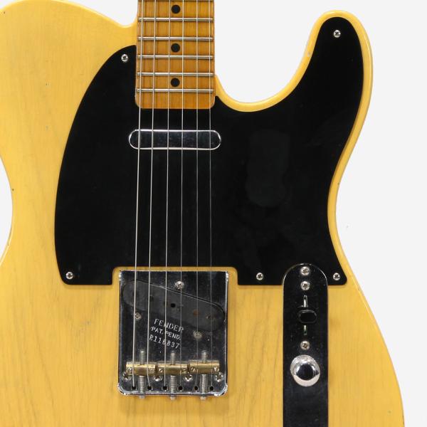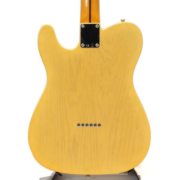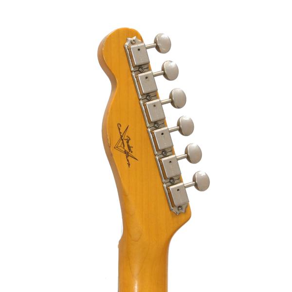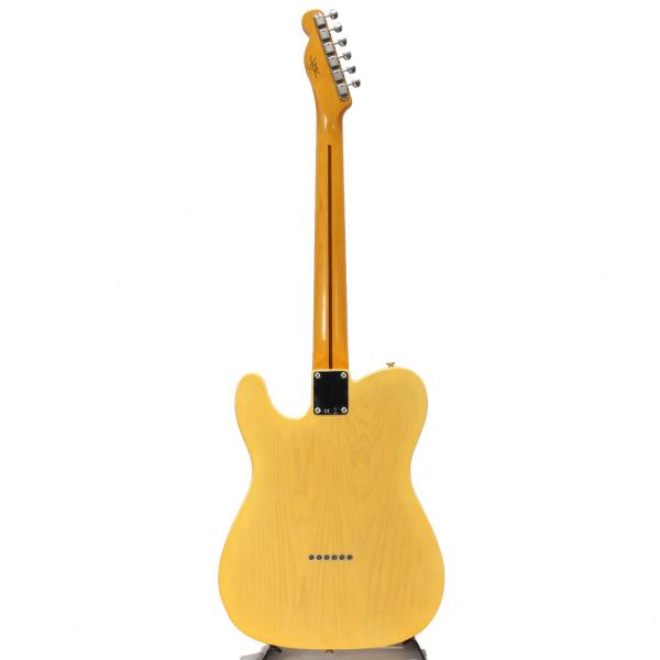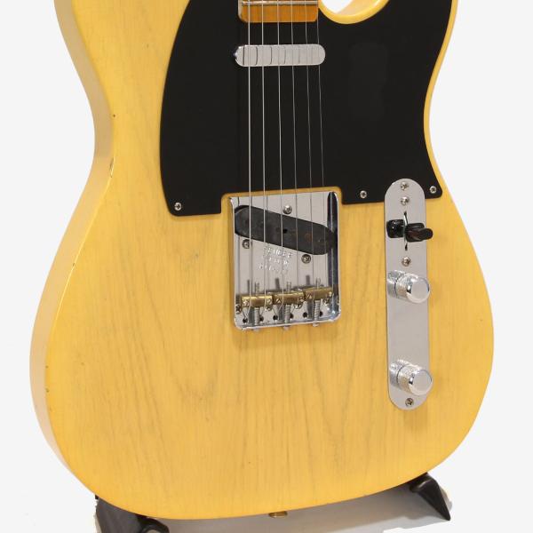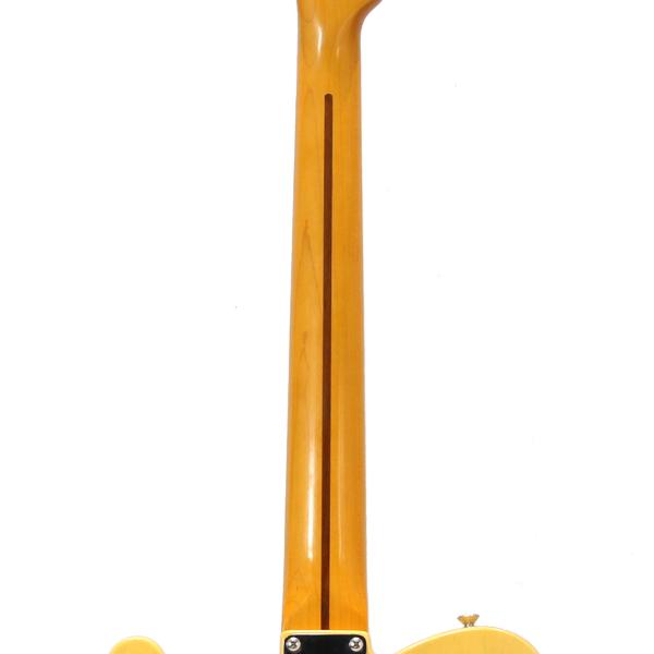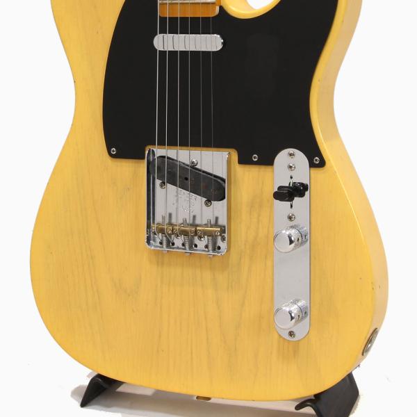 本機は今なお高い人気を誇る50sスタイルのテレキャスターをカスタムショップの高い技術力と長年培ってきた経験で再現させたモデルです。ブロンドカラーで彩られた2ピースアッシュボディにメイプル1ピースネックを採用、ブラックガードが特徴的な一本です。