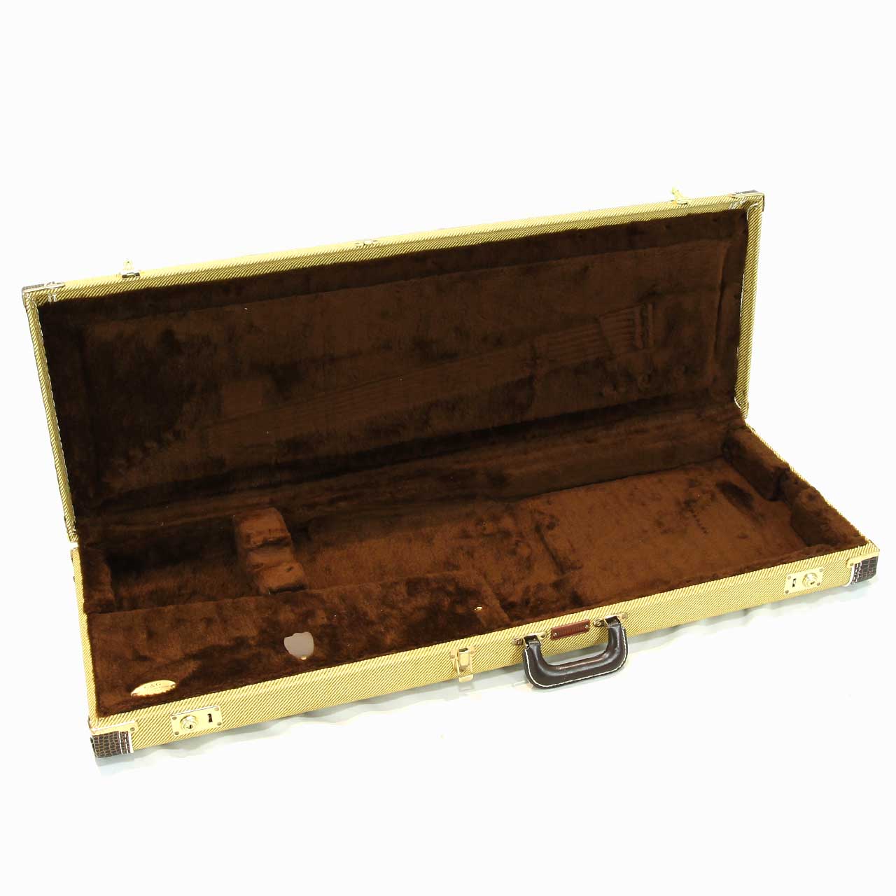 It comes with a rectangular tweed mid 50s style hard case (not aged).