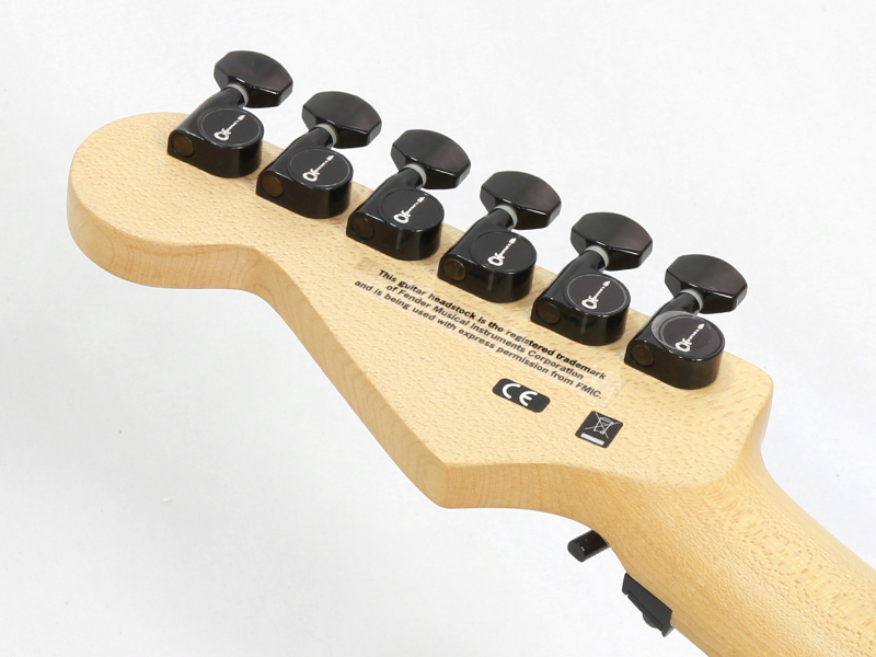 SO-CAL STYLE1 HHは、コンパウンド・ラジアスが施された1ピース・メイプル・ネック、ブラック・ピック・ガードにマウントされたセイモアダンカン・ピックアップ、フロイドローズ・トレモロ、そしてマスター・ヴォリュームとピックアップ・セレクターのみのシンプルなコントロール・レイアウトを持った初期80sスタイル・デザインを色濃く残したモデルとなっております。