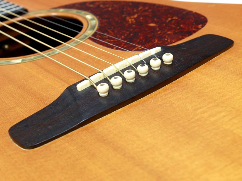 状態は良く、調整が行き届いた良い個体です。トップ板の6弦側のネック脇約1cm程の所に、縦に約4cm程の目立たないクラック修正歴がございますが、内部パッチを含めて綺麗に修繕されており、今後の使用に関しても問題のない状態に仕上げられております。