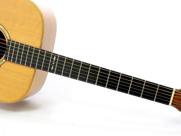 Dサイズとは思えない反応の速さで、クリアでしっかりとした音の立ち上がりは他に類を見ない仕上がりです。硬質でクリスタルなトーンを持っていますが硬さはなく、しっかりとウッディなボディ全体の鳴りを体感することができます。ノンカッタウェイのドレッドノートスタイルですが、フィンガースタイルとの相性が非常によく、奥深く繊細で、シングルノートもパワーのある伸びやかな演奏を可能にしてくれます。