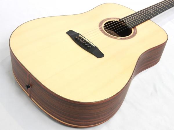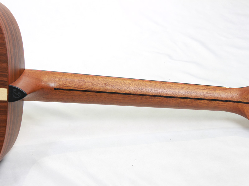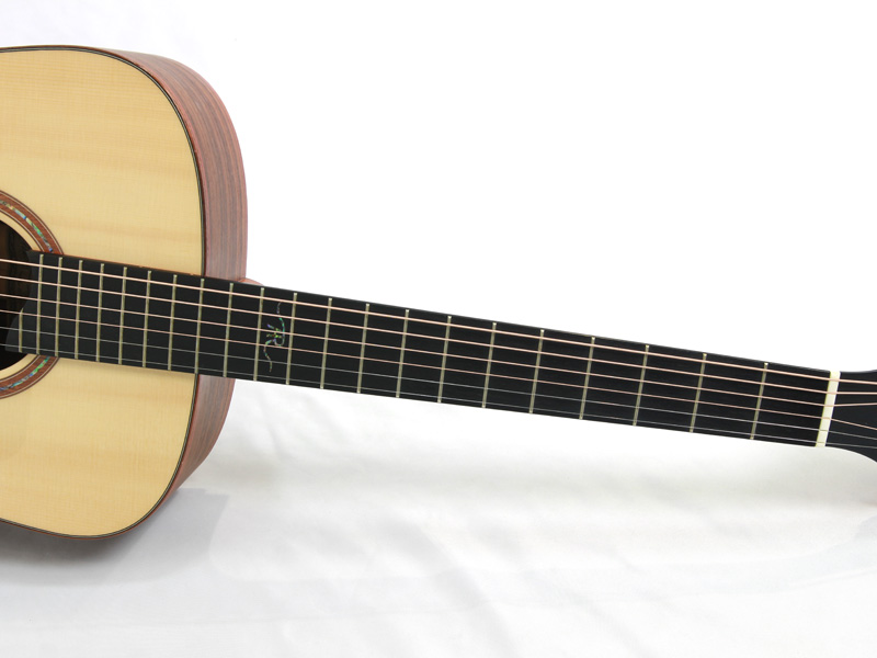 本器の特筆すべきポイントはトップ材が北イタリアはアルプス・ドロミテ地方で産出される”ドロミテスプルース”が使われているところ。サウンドは非常にオープンで、クリアな澄んだ高音域とニュアンスに富んだ中音域が特徴です。更にはインディアンローズウッドのボディにマホガニー・ネックの仕様ですので、コシの効いた低音による迫力あるサウンドが魅力のモデルです。