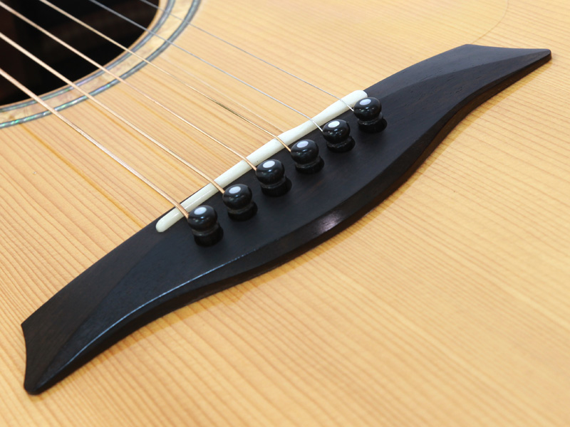 その他スペックとしては、マホガニー材ネック、エボニー材指板&ブリッジ、44.5mmナット幅、648mmスケール、ブラジリアンローズウッド材ヘッドプレート、アヴァロントリム&バインディング、Alessiのオープンバックタイプ・ペグ(スネークウッドボタン)、フレンチポリッシュ塗装となっています。