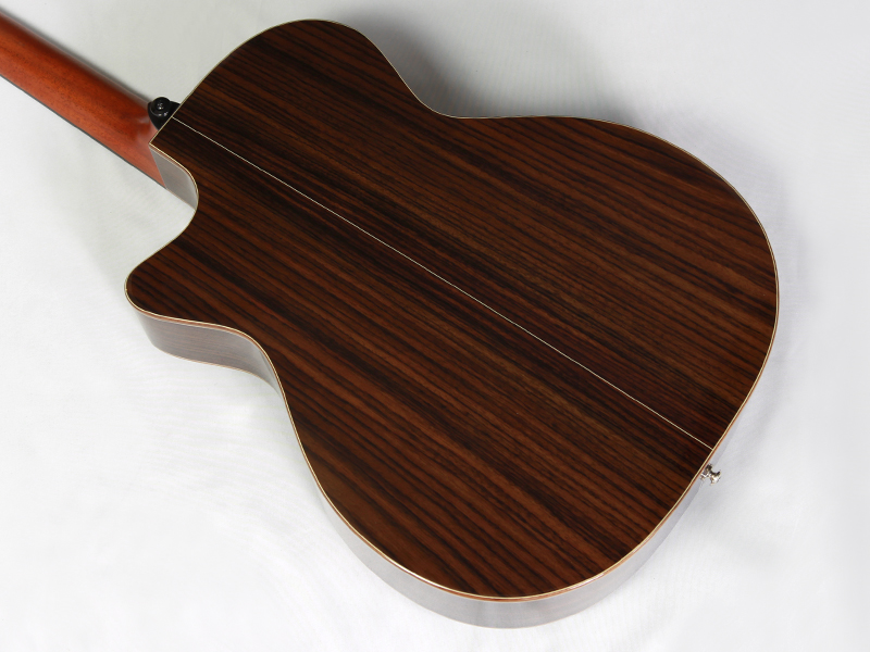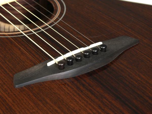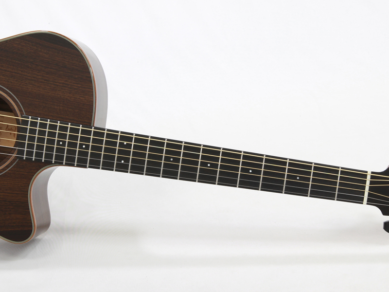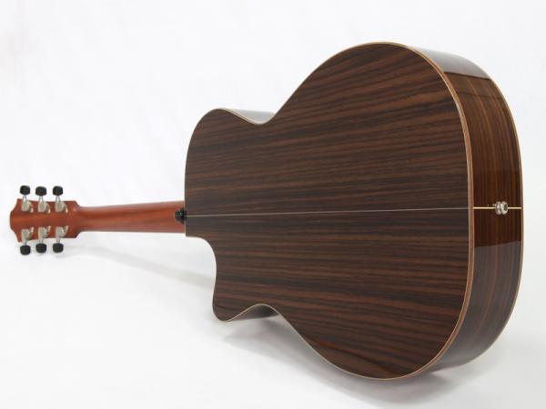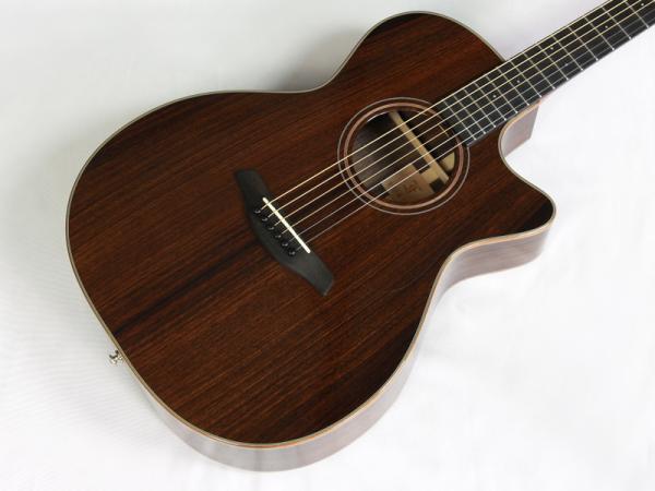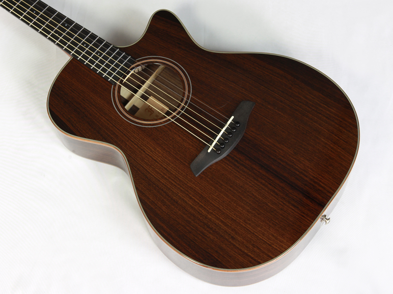 アコースティックギターとしては一部のカスタム品でしか見ないオールローズと言う特殊な仕様ですが、全域でクリアで粒立ちの良いアコギらしい音色に仕上がっております。ローズの硬さが程よくクリスピーな音の粒立ちを加味しており、タイトなローエンドと相まって抜けの良いハイレスポンスなサウンドとなっております。