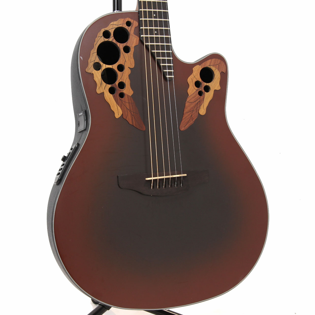 そしてオベーション・オリジナルのピエゾ・ピックアップ、定評のあるオベーションエレクトロニクス、オベーションを十分に味わえるクオリティです。個性的なルックスとクオリティの高いサウンド、演奏性、おすすめのエレアコです。