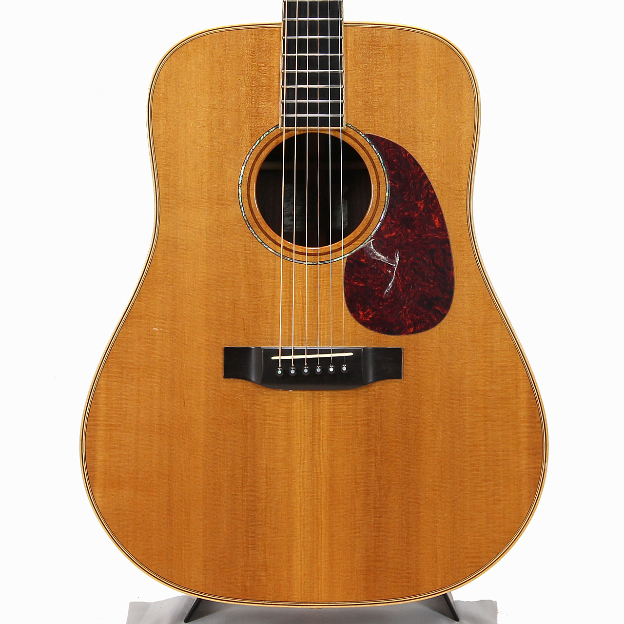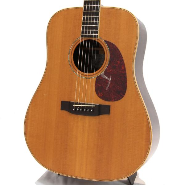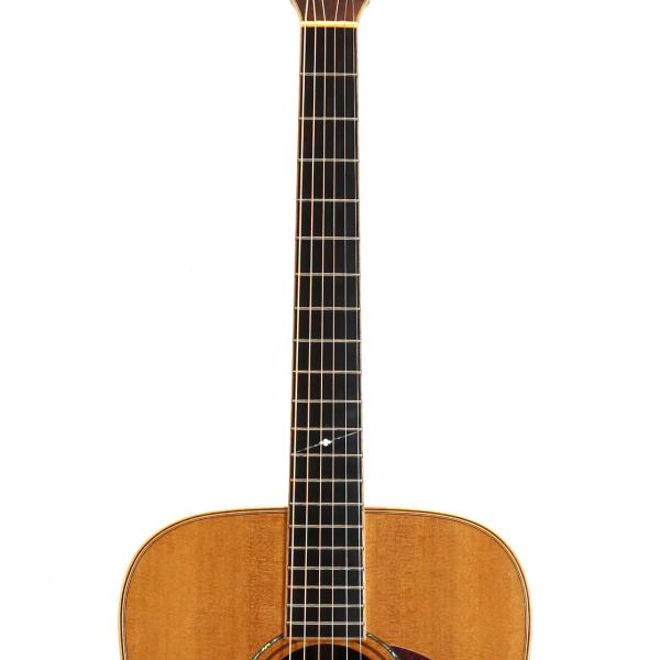 当時、楽器店のオーダーモデルとして限定生産されたモデル。オール単板の本格的なドレッドノートシェイプ、ネックからヘッドまで伸びるウッドバインディングが高級感を醸し出す1本です。