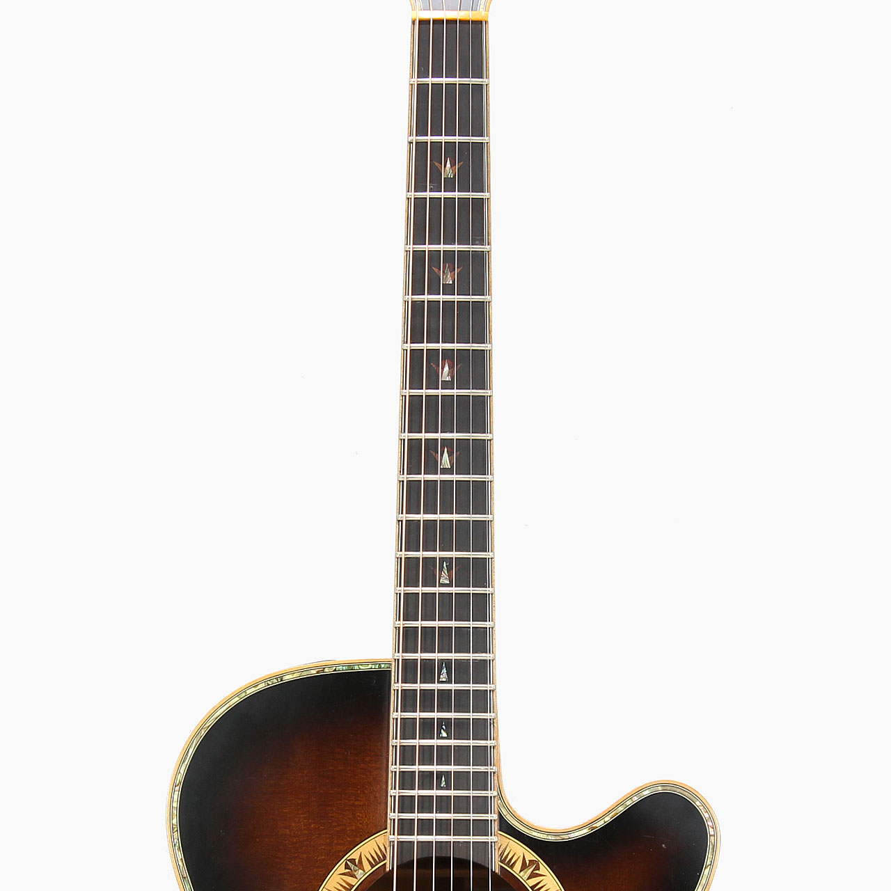 ふくよかな鳴りを持ちつつもスマートなボディシェイプで抱えやすくバランスよく明るいサウンドのオリジナルシェイプに歯切れよくブライトな響きのメイプル材を組み合わせたフラットピッキングに最適なエレアコ。AD-1プリアンプには2バンドのイコライザに加えリバーブが搭載されている他、作り込んだ設定をプリセットで保存可能。