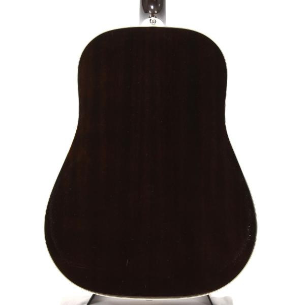Jボディらしい豊かな低音域と迫力ある音色は弾き語りにピッタリ。マホガニー材らしい柔らかく広がりのあるアコースティックサウンドで、程よく引き締まった低域とクリアで伸びやかな高音域がとてもバランス良くまとまっております。流石はオール単板仕様な音抜けの良さと美しいサスティーンがご体感頂けます。