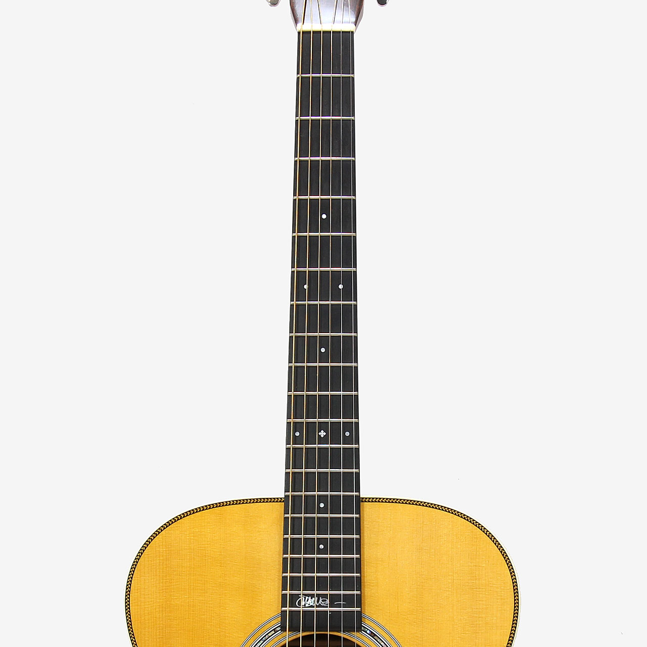 ナローネックとなる42.9mmのナット幅を採用しておりエレキからの持ち替えもスムーズ。ドレッドノートと同じ645mmのスケールは「Neon」のように6弦をCまで下げるなど変則チューニングにおいてもテンション不足を軽減できます。000とは明らかに違う押し出しの強いサウンドはOMシェイプならでは。