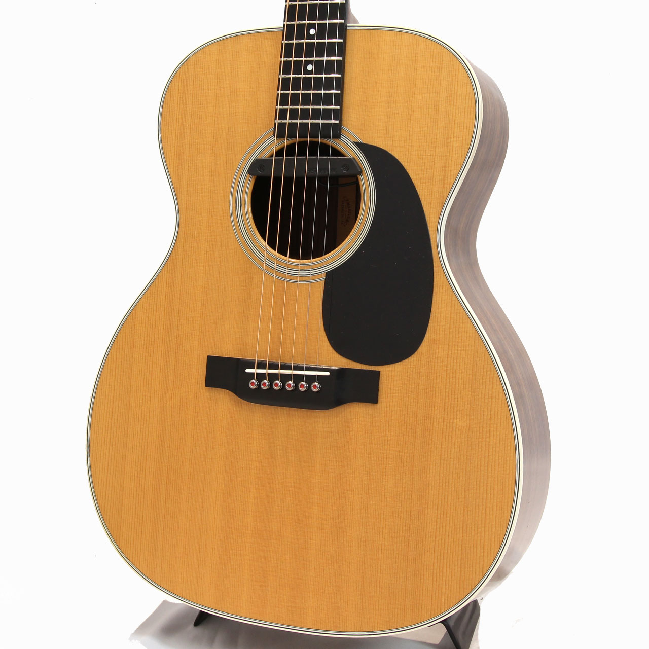 本器は、2015年製の000-28 Standard。2018年以前の仕様で、ネックは42.9mmナット幅のロープロファイルネック、ブラックピックガードにノンスキャロップ・ブレーシングのスペックとなります。
