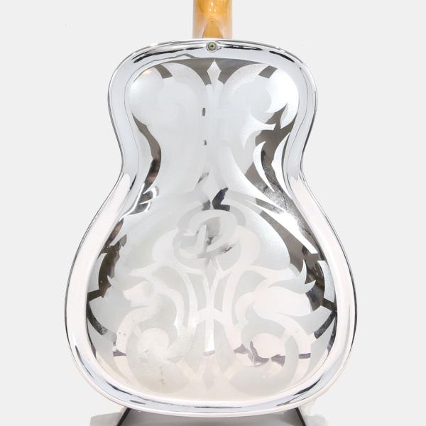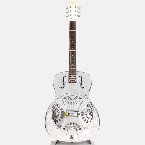 リゾネーター特有のトレブリーでいなたい独特のサウンドはブルースやハワイアンミュージックにぴったり。アコースティックよりも大きな音量を求めて開発されたリゾネーターですが実際にはそこそこの音量、むしろ通常のアコースティックでは絶対に出せない音色を求める方がほとんどです。ネック形状はラウンドネックですが後述のセッティングはスライド奏法に合わせてあります。
