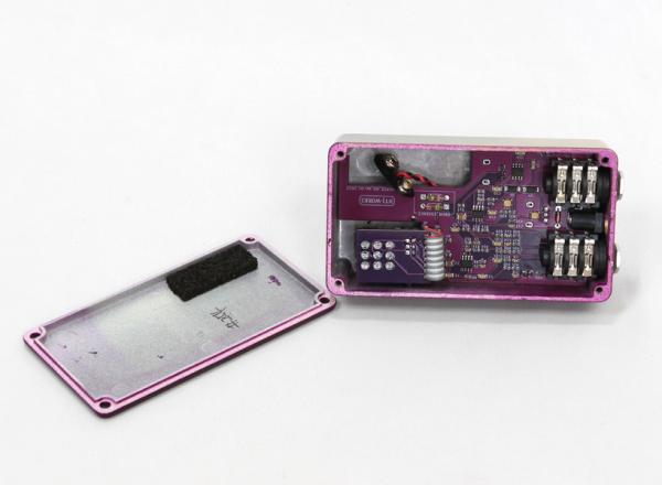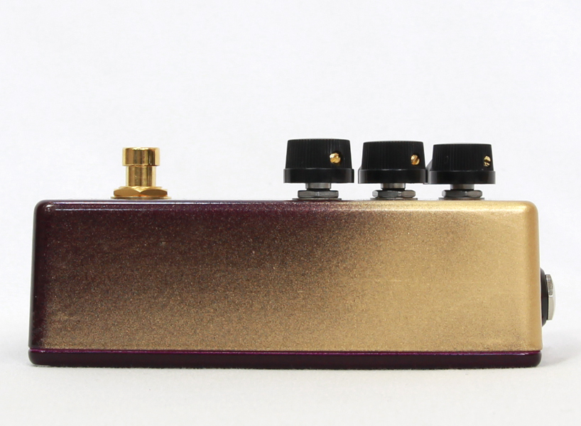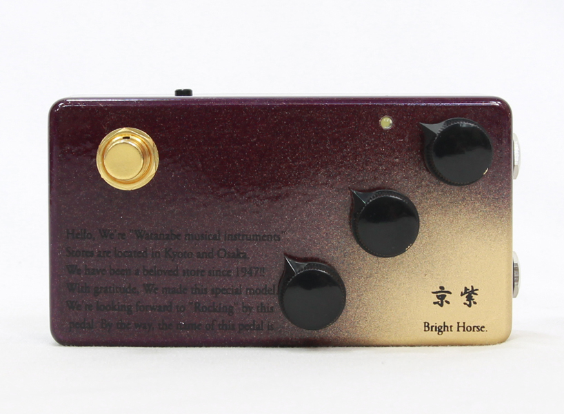 ビルダー様との幾重にも渡る話し合いと試行錯誤の上、完成した見事なグラデーションのオリジナルデザインは、京都に本社を置くワタナベ楽器店ならではの『京紫』を基調とし、フットスイッチにもゴールドパーツを使用することで、上品で雅なペダルに仕上がっております。