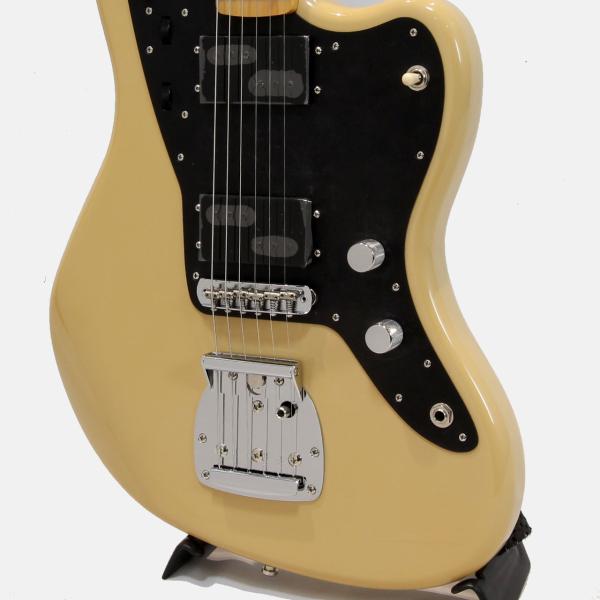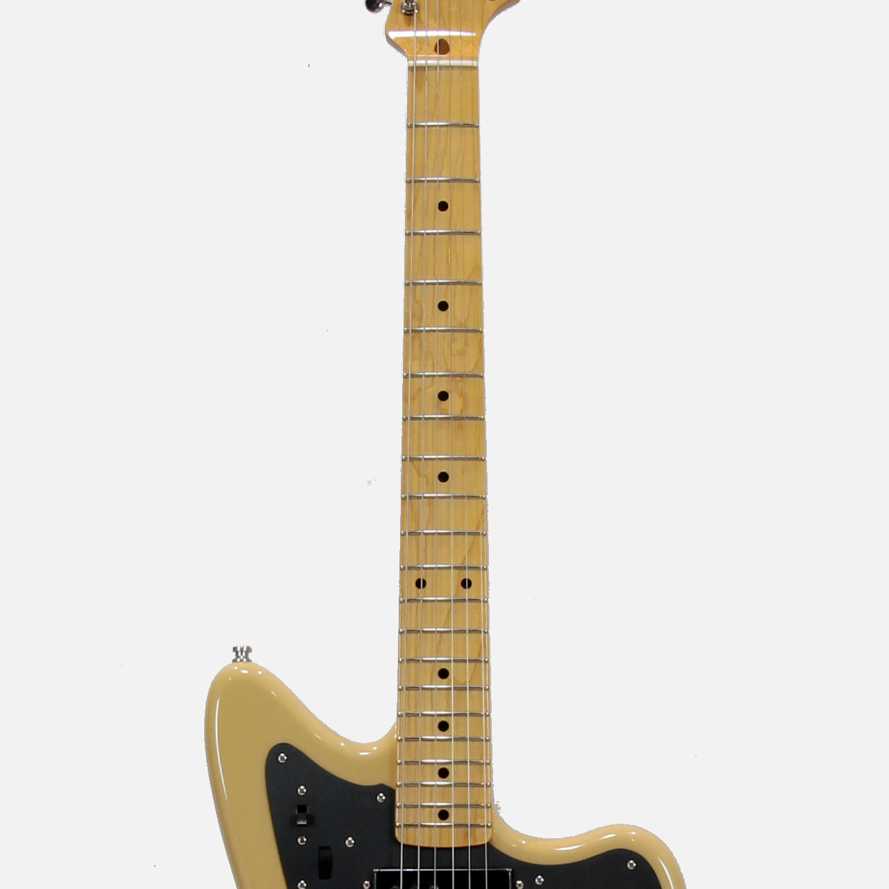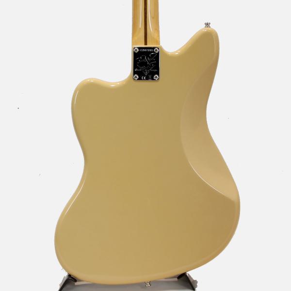 まず、シグネイチャーモデルとして初のメイプル1ピースネックを採⽤しストラトキャスターのヘッドストックとの組み合わせが目を惹きます。ボディカラーには、1950年代中期にジャズマスターの開発初期で⽤いられていた"デザート・サンド"をセレクトし、クラシックなヴィンテージの雰囲気を纏いつつも現代的な演奏環境に対応する洗練されたデザインが特徴です。