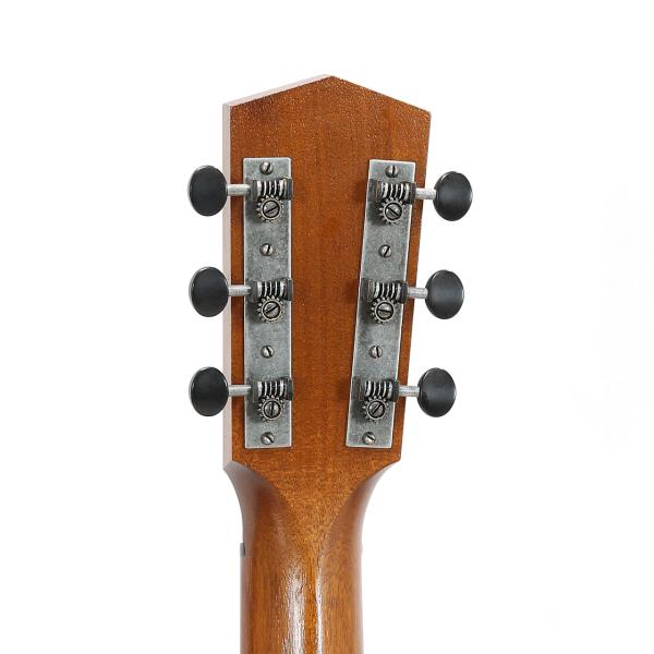 30年代当時の仕様を再現したラダーブレイシングとT-Barの組み合わせで、スプルース材単板トップ、マホガニー材単板サイド&バック、マホガニーネック、ローズウッド指板&ストレートブリッジ、赤鼈甲柄ピックガード、サテン・ニトロセルラッカー、Golden Age Restoration Tunerとなっております。
