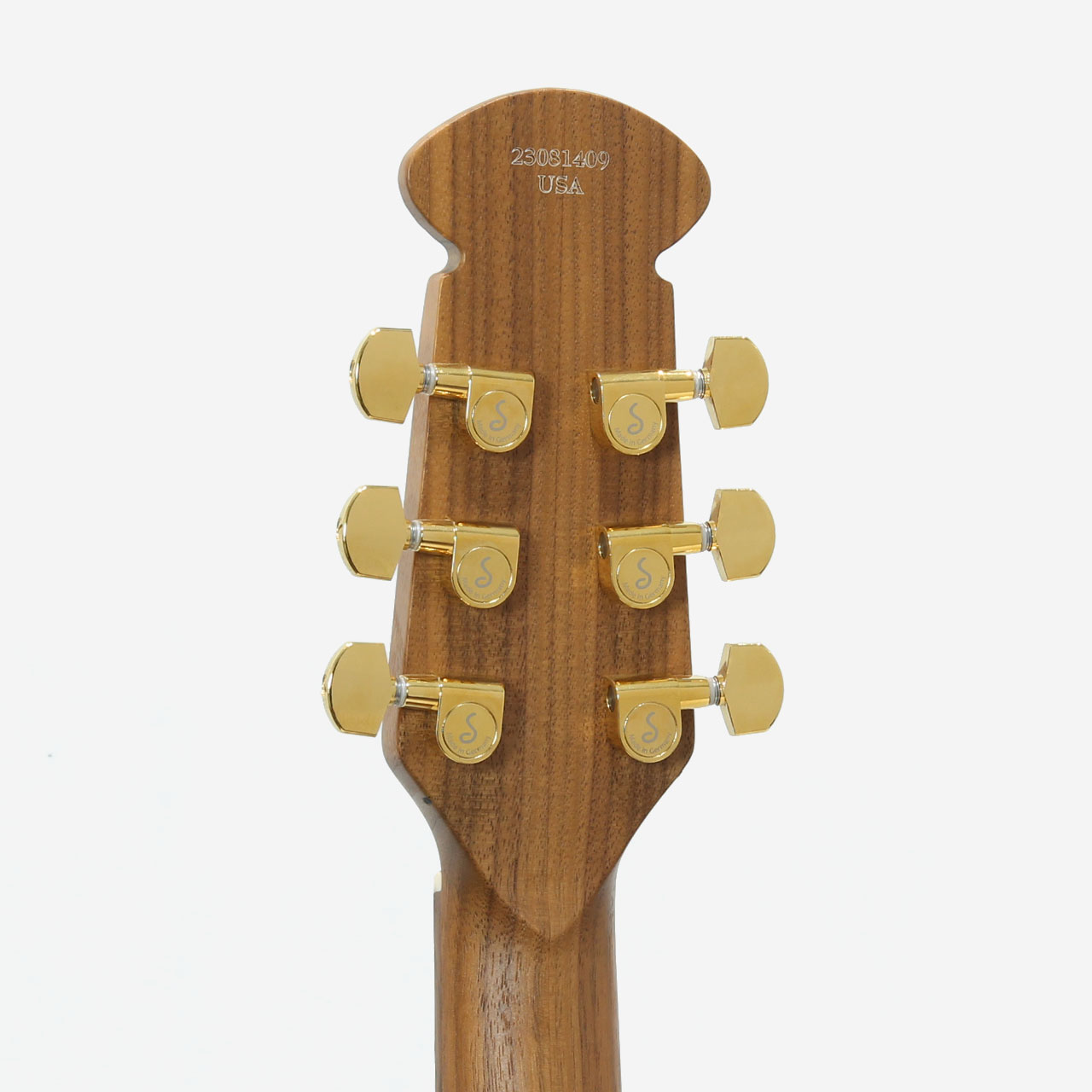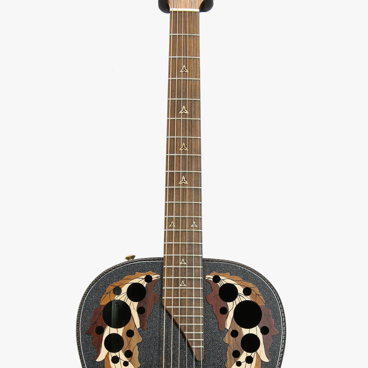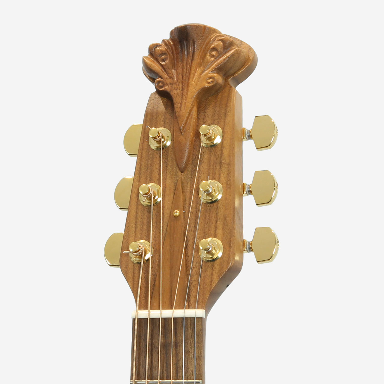 カーヴド・ペグヘッド・スクロール、カーヴド・ウォルナット・ブリッジ、美しいデコレーションをあしらったマルチ・サウンドホールなど、そのビジュアルも大きな魅力となっています。