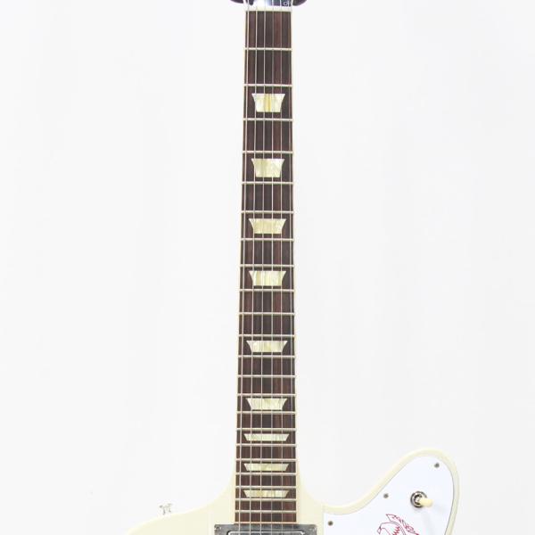 ローズウッド指板にマホガニー/ウォルナットの9層のスルーネック構造にバンジョー型チューナー、両ウィングはマホガニー。2基のアルニコ5ミニハムバッカーを搭載した「これぞファイヤーバード!!」とグッとくる方が多い仕様ですね。サウンドもミニハムらしい高域のキラッとしたヌケとマテリアルがもたらす絶妙の中域が心地良いサウンドです。出力もあるのでありがちな軽い音は皆無、濃厚なトーンを届けてくれます。ブルースはもちろんですが、ハードに歪ませてもしっかり応えてくれます。愛用者も多い所以が良く分かります。良い音です!!