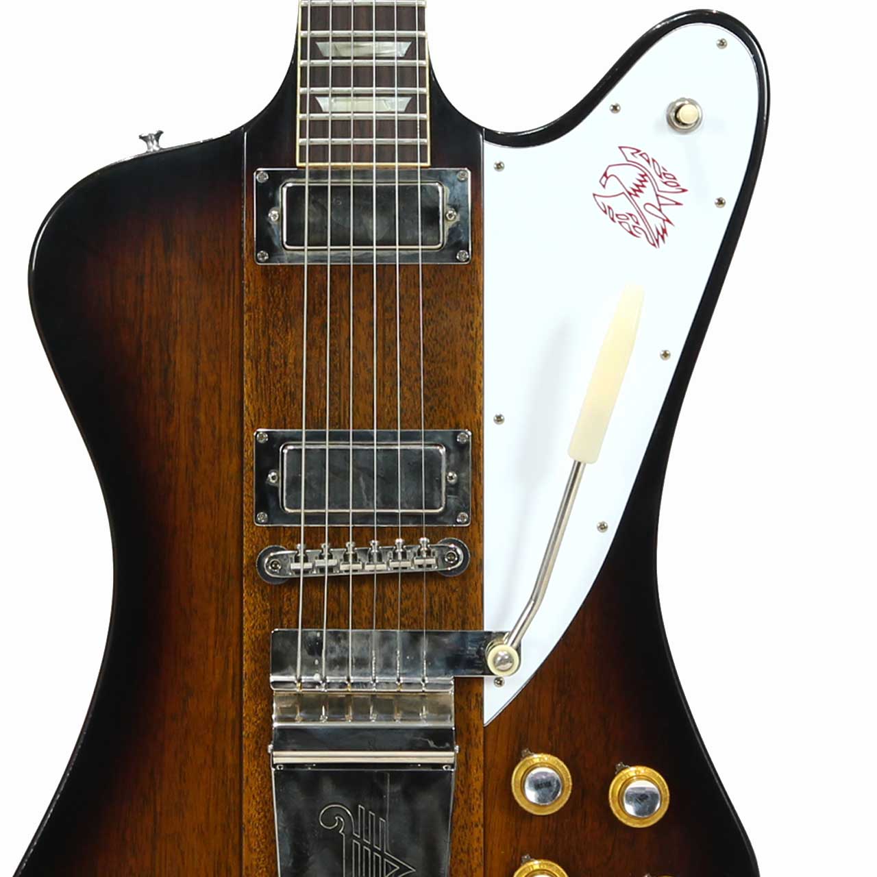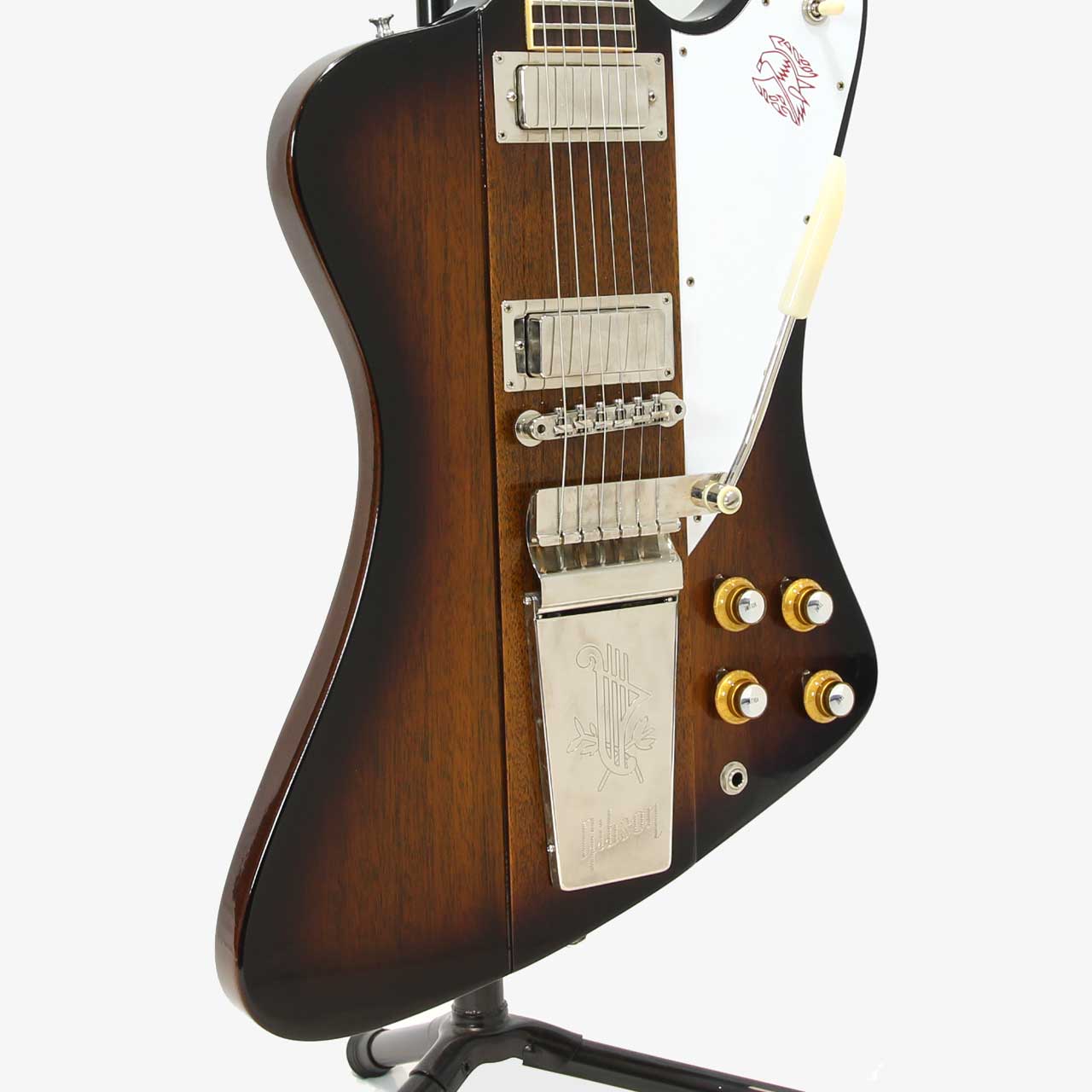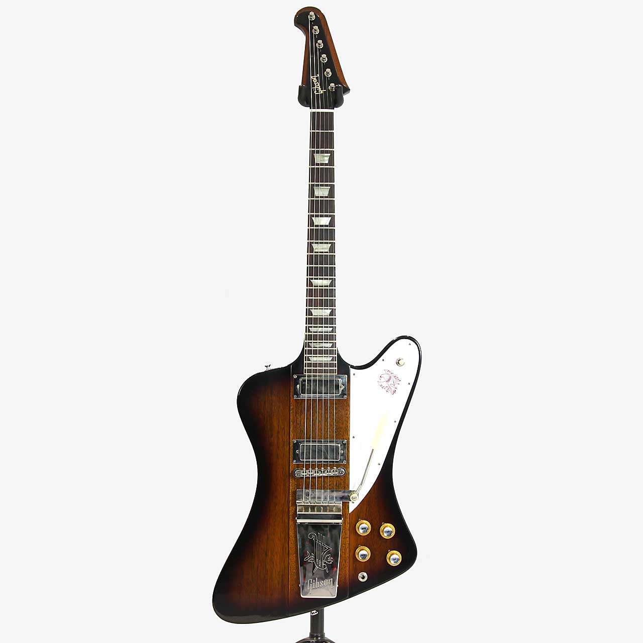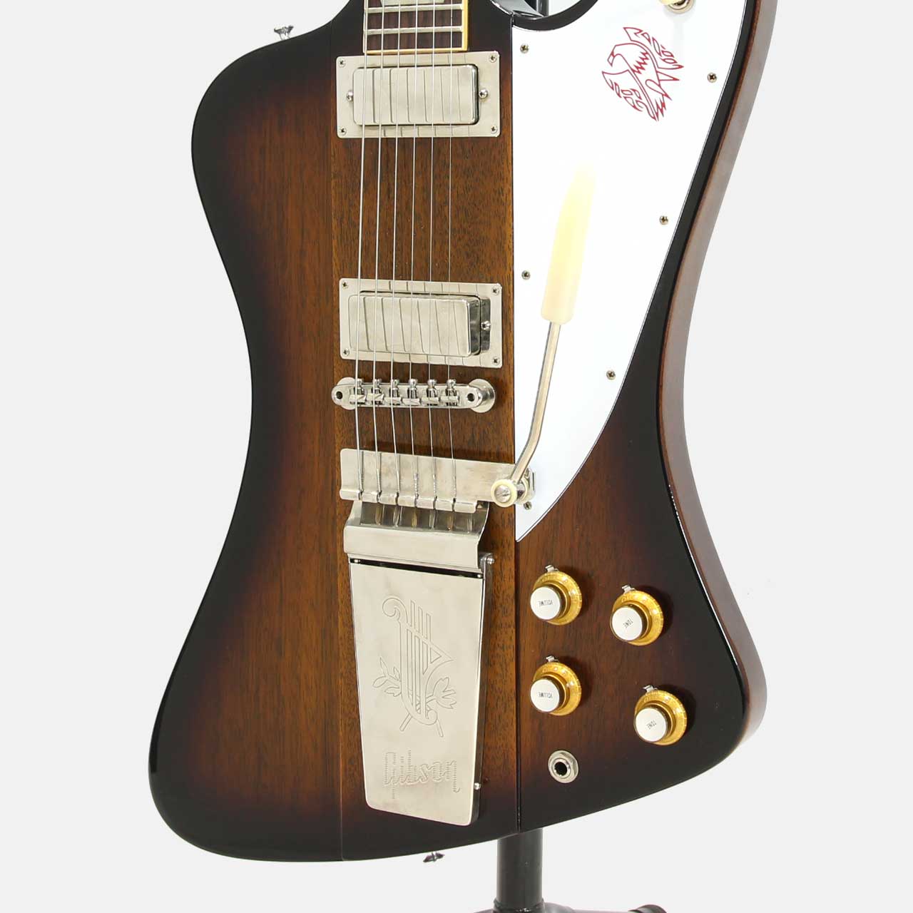 今回入荷した本機は63年製ファイヤーバードVのリイシューモデル。サンバーストカラーにマエストロヴァイブローラ仕様でファイヤーバードと言えばコレ!!とイメージされる方も多い1本ではないでしょうか?