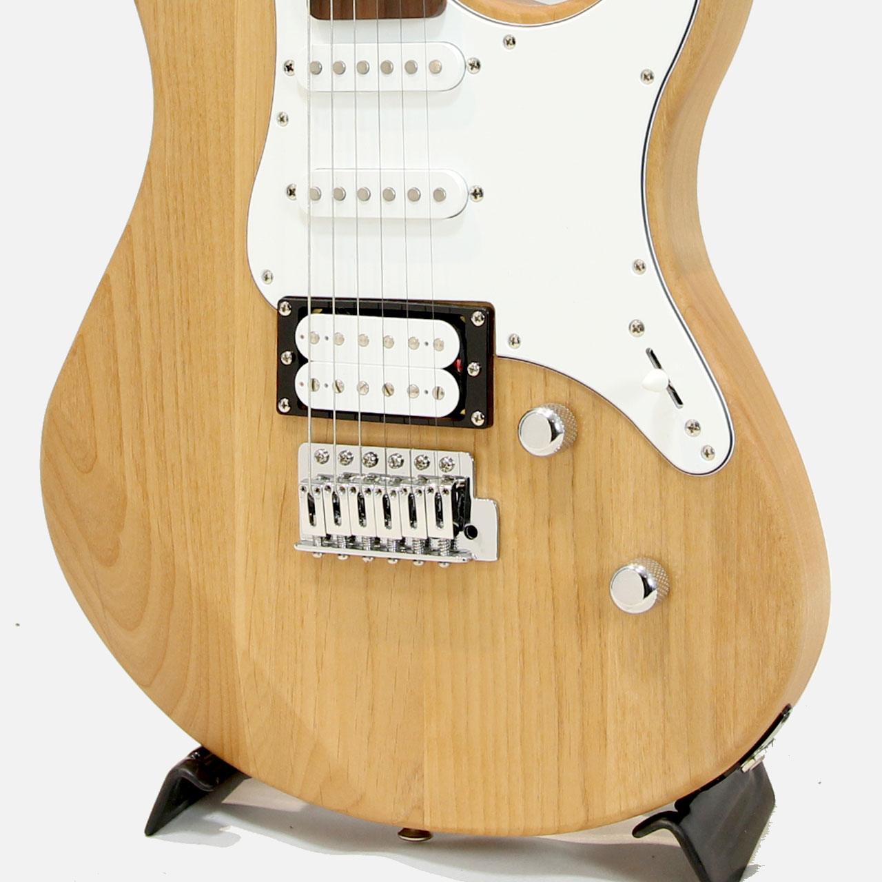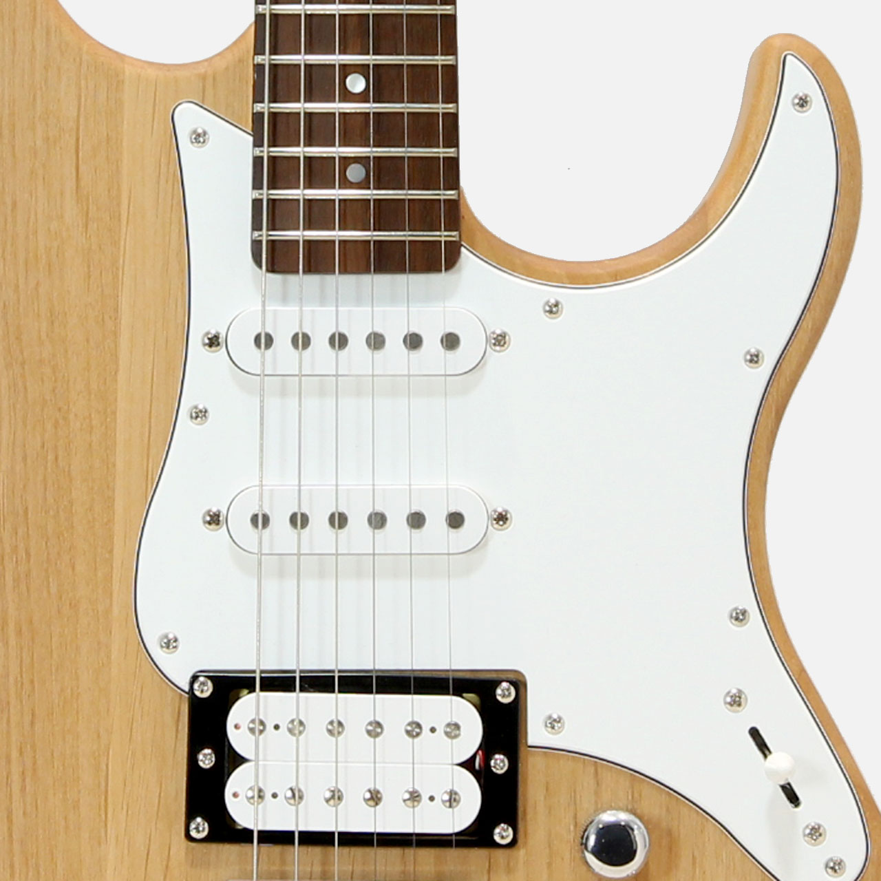PACIFICAシリーズの上位モデルと同様、リアピックアップをピックガードではなく、エスカッション方式でボディに直接マウント。ボディの振動をピックアップがダイレクトに受け止め、迫力のあるダイナミックなサウンドを出すことが出来ます。