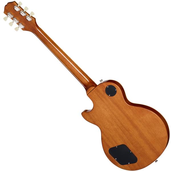 ボディ・トップにはメイプルが貼られ、上面にはAAA グレードのフレイム・メイプル化粧板があしらわれています。1959ラウンド・ミディアム・Cシェイプのネックにはバインディングが施され、ロング・ネック・テノン方式でボディにジョイントされています。ローレル指板にはクラシカルなディッシュ・インレイが施され、カラマズー・ヘッドストックにはヴィンテージ・デラックス・チューナーを搭載。電装系には定評のある2基のProbuckerハムバッカー・ピックアップ、ダイヤル・ポインタ付きのゴールド・トップハット・ノブを採用。Graph Techナット、CTSポット、往時の製法に則った配線など、拘りの仕様群により魅力が一層高められています。Epiphoneプレミアム・ギグバッグが付属となります。