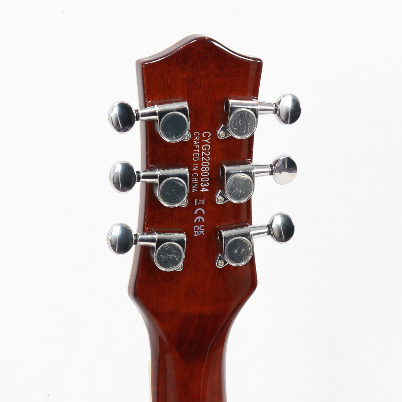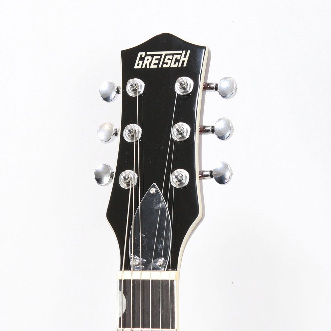 チェンバード・マホガニーボディ-ラウドでクリアかつクラシックなJetのトーンは、メイプルトップのチェンバード・マホガニーボディから始まり、豊かな低音域と中音域、非常に滑らかで存在感のある高音域を生み出します。その結果、堅牢でありながらもバランスの取れた、深い音の基盤を実現しています。 Black Top Filter'Tron PU?真髄となる力と明晰さを兼ね備えた、Black Top Filter'Tron PUは、Electromatic Jet FTのチェンバード・ボディを増幅させ強調することで、ワイドでバランスの取れた、クリアなトーンを生み出します。