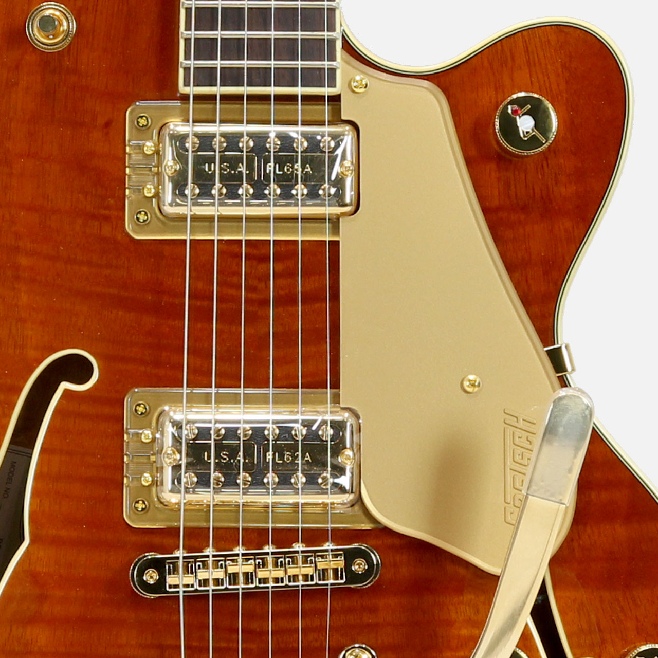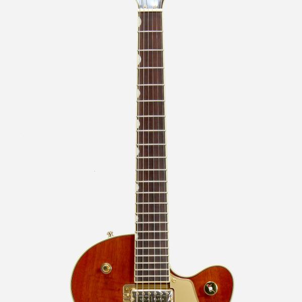 美しいフレイムオクメを採用したシングルカッタウェイボディ、ローズウッド指板、USA Full'Tronピックアップ、"Gアロー"ジュエルコントロールノブ、ゴールドハードウェアを備えたこのLimited Edition Broadkaster Jr.のエレガントなスタイルとプレミアムなサウンドはすべてのオーディエンスの注目を集めることでしょう。