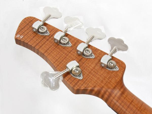 Hipshot製ライトウエイトチューナーに19mm弦ピッチのブリッジ、DiMarzio 5HCピックアップ、オリジナルプリアンプ搭載。