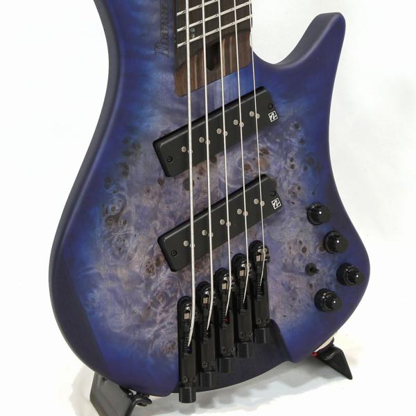ボディトップにエキゾチックな杢目を持つポプラバールを採用したヘッドレスベース5弦