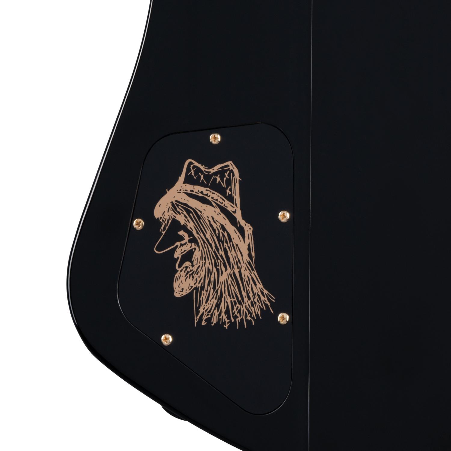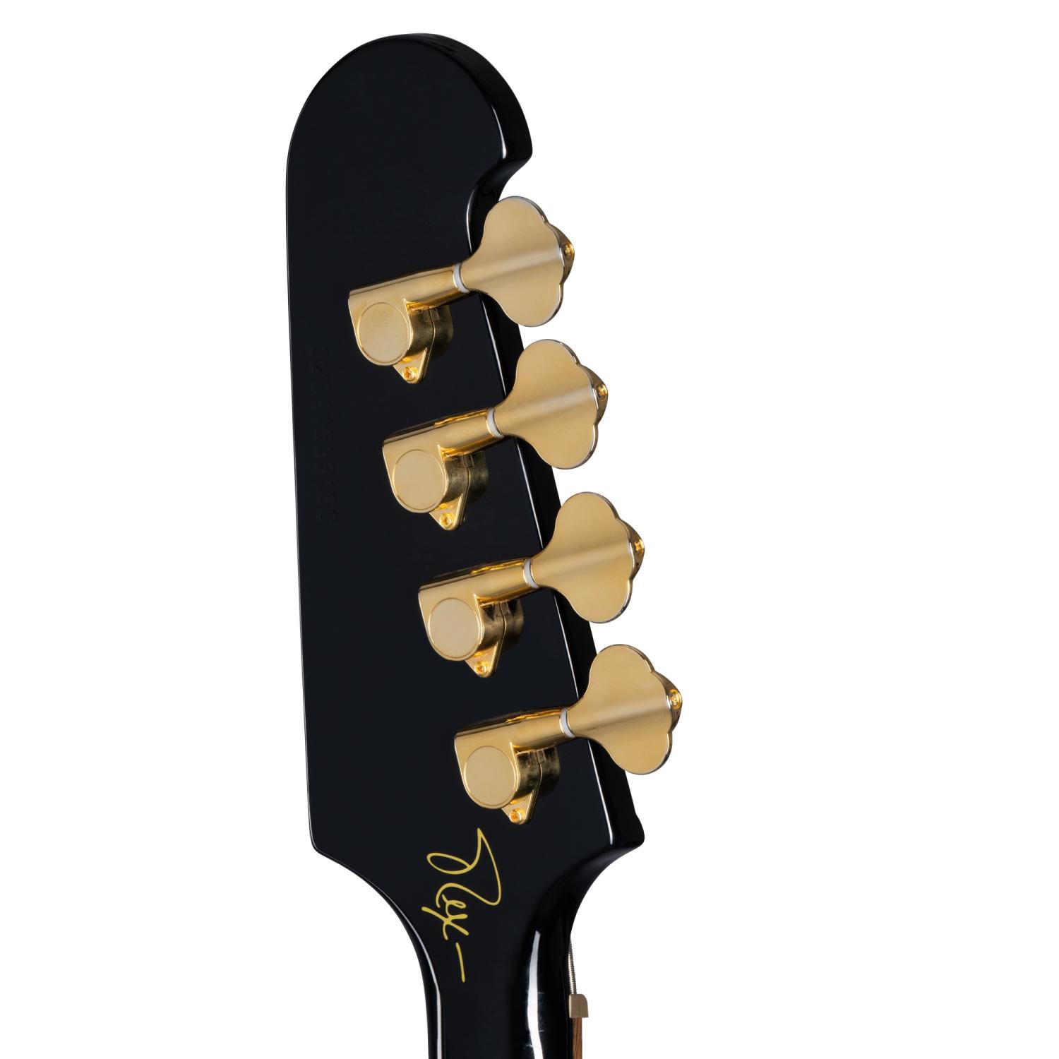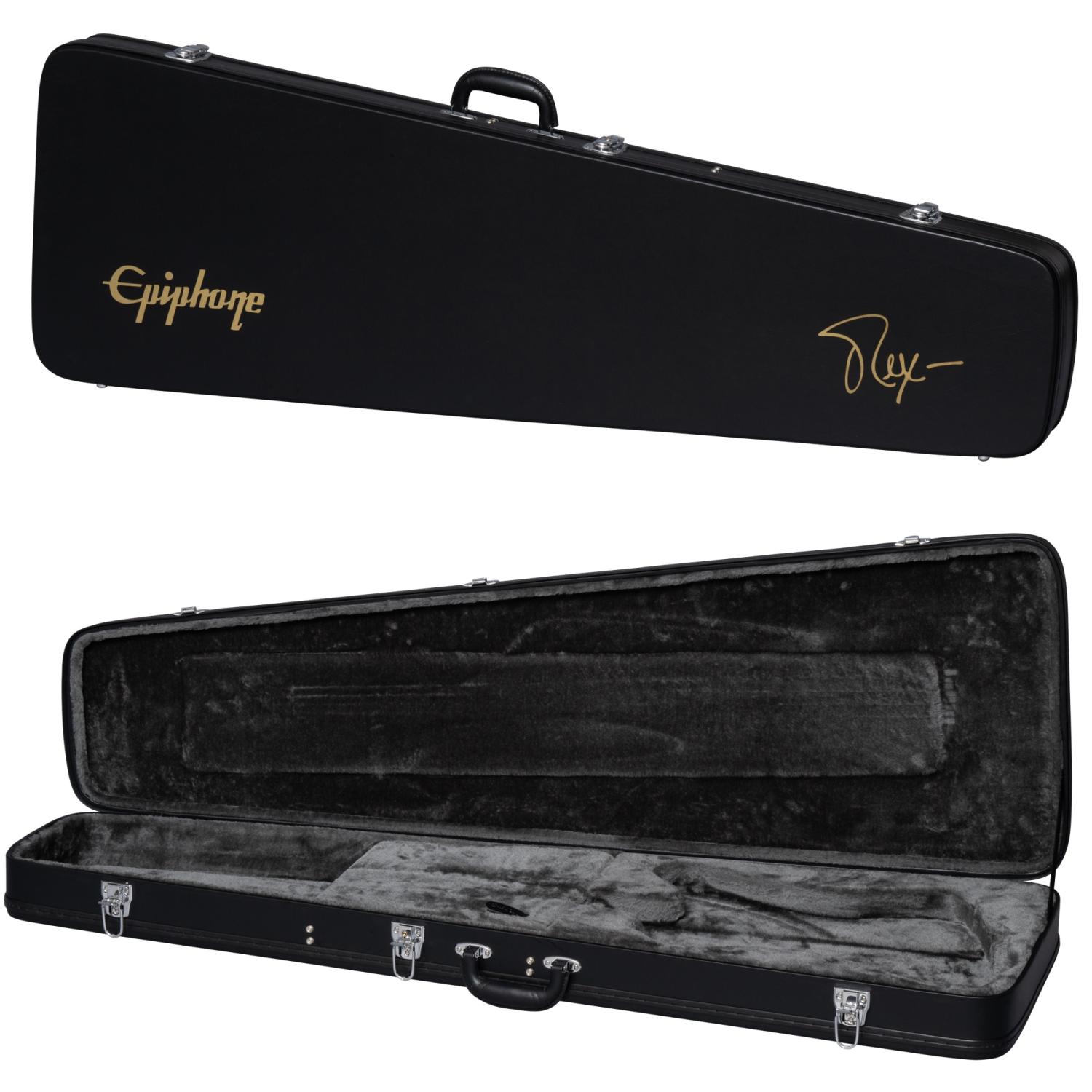 Epiphone ProBucker 760ベース・ピックアップを搭載。ニッケル・カバーが採用され、オール・ゴールドのハードウェアを引き立てています。パッシブ回路を採用。2基のボリューム・コントロールと1基のマスター・トーン・コントロールには、スムーズなCTSポテンショメーターが搭載されています。ゴールドのピックガードには有名なサンダーバードのロゴが入り、ヘッドストック裏にはレックスのサインが施されています。リア・コントロール・カバーにはレックス・ブラウンのロゴが描かれています。ハードシェルケースが付属となります。