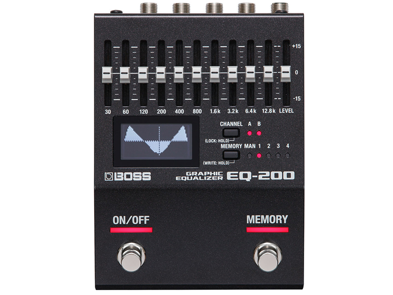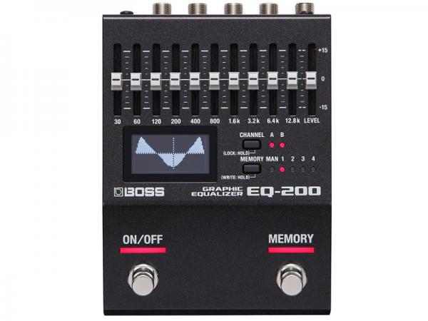 EQ-200 Graphic Equalizerは極めて柔軟性の高いギター/ベース用イコライザーです。ワイドレンジの10バンド・イコライザーを2基搭載。視認性の高い内蔵LCDディスプレイにより、イコライジングの状況を瞬時に確認できます。また、2基のEQはパラレル/シリーズ接続で使用可能。お気に入りのエフェクトを本体にインサート接続することにより、外部エフェクトの前段/後段に、別々に設定されたイコライジングを行うこともできます。10バンドの中心周波数は3タイプより選択でき、楽器に合わせた最適なセッティングを実現します。