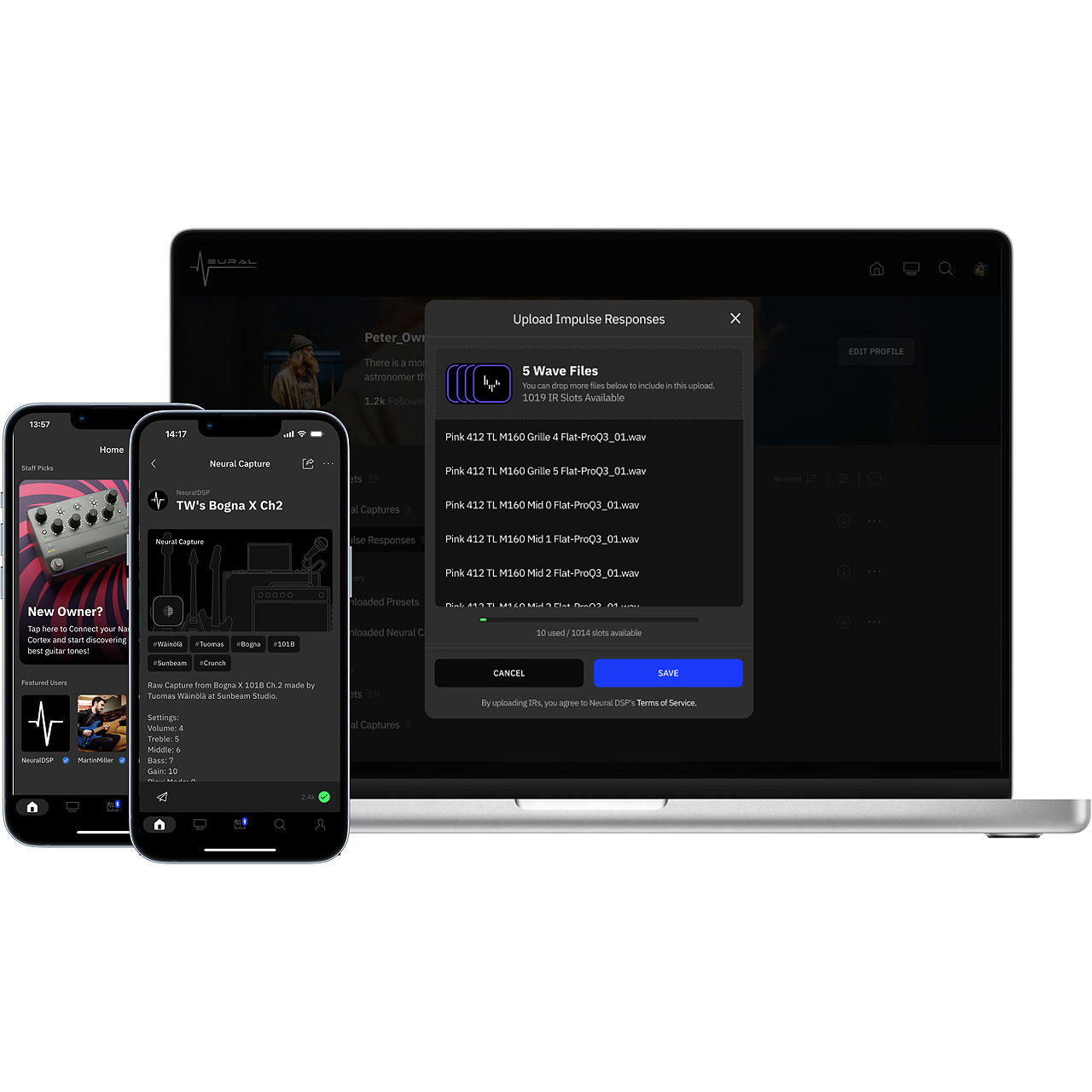 Cortex Cloudアプリを通じて、様々なNeural Captureをブラウズ、検索、ワイヤレスでNano Cortexに直接ダウンロードできます。他のユーザーがキャプチャーしたアンプ、キャビネット、ペダルに瞬時にアクセスできます。