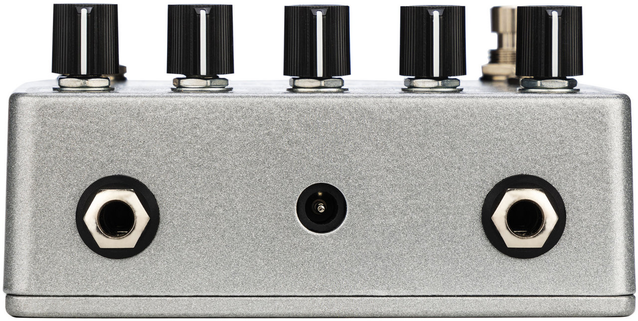新しく採用した筐体の上にはSpeed、Intensity、Mix、Repeats、Time、そしてModulateとActiveフットスイッチを搭載し、あなたの夢のアンビエントの手助けをします。ディレイタイムを短く、Repeatsとモジュレーション部を高く設定した際の不思議な揺れはワイルドなコーラス系の効果をつくり、ディレイタイムをお好みで設定し、モジュレーションのタイミングを曲のテンポに合わせてリズミックにコードをかき鳴らしたりリフやソロを弾いたりも。ジェイミーが施したモジュレーション回路とこのペダルが奏でるディレイの可能性は無限大です。