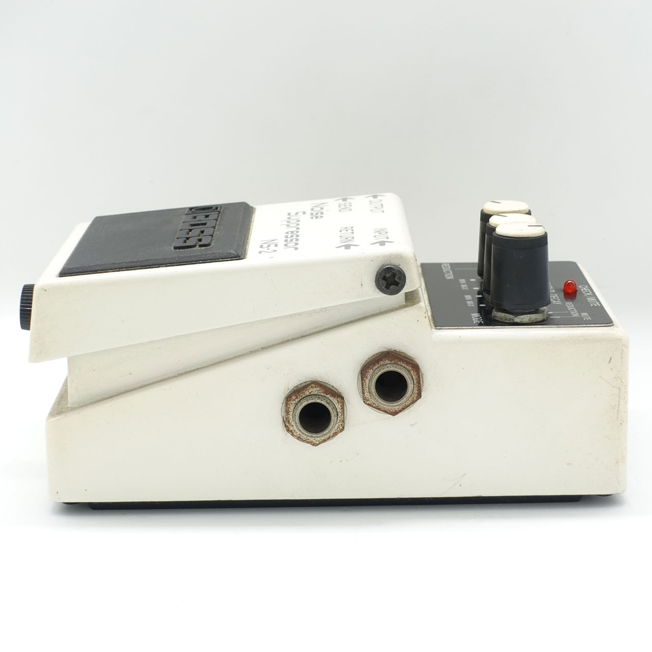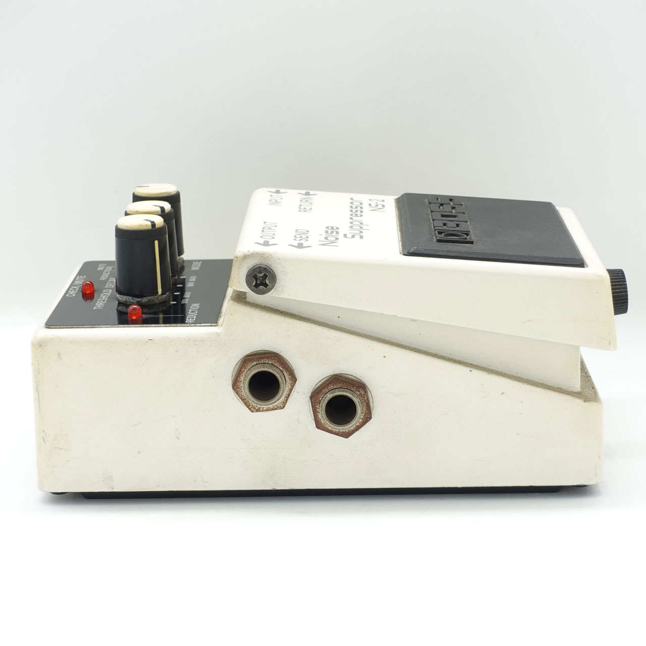 NS-2はINPUT端子に接続した楽器の信号を検知し、サウンドそのものには影響を与えずにノイズだけをカット。高性能VCAと高速なエンベロープ検出回路のはたらきにより、アタックの立ち上がりや減衰音も自然な状態を維持します。また、ノイズの発生源が特定のペダルにある場合は、NS-2のSEND/RETURN端子に取り込みましょう。検出に好ましいクリーン・サウンドをINPUT段で解析することで、歪みペダルから発生するノイズを極めて自然に抑制できます。