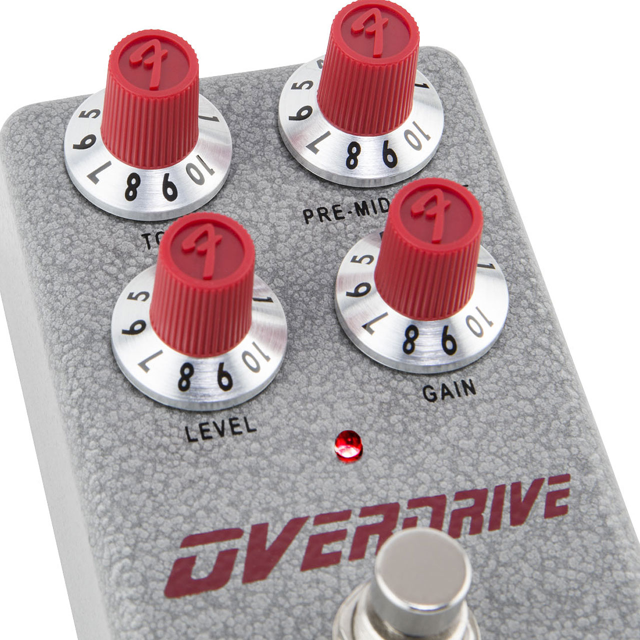 トップにフェンダーのロゴマークの刻印されたノブは、60年代のアンプにインスパイアされたHammertone専用設計で、トップ部は筐体にデザインされたロゴとマッチングカラーになっています。