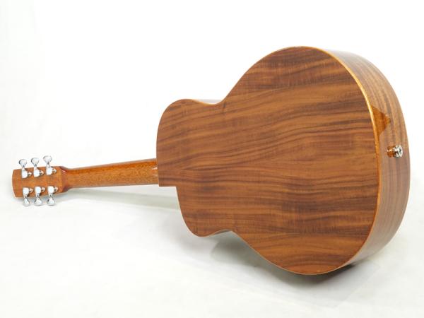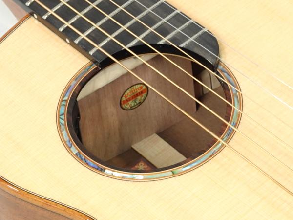 各弦の輪郭、バランスがしっかりしており、ミニギターとしては珍しいカッタウェイ仕様となっておりますので、フィンガースタイルのお客様にもともと人気だったBirdguitarですが、杉田氏によってブレーシングデザインが一新されたことで、全体的共鳴が更に協和するようになり、音を保つこと(テヌート)に関して更に繊細な表現ができ、音色質感が更にグレードアップしております。