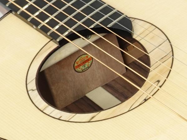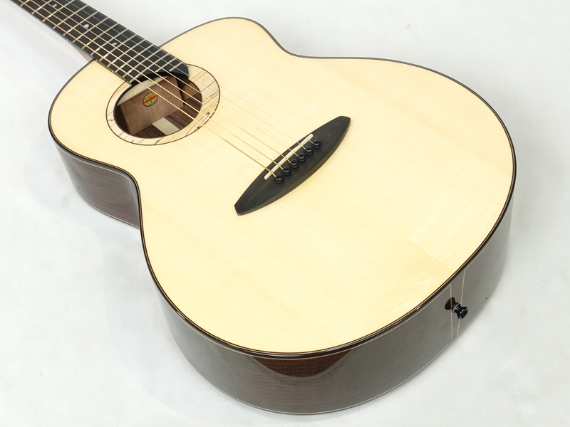 スペックはムーンスプルース材単板トップ、インディアンローズウッド材単板サイド&バック、マホガニー材ネック、エボニー材指板&駒、牛骨ナット&サドル、44mmナット幅、640mmスケール、グロス・ボディ&グロス・ネック、Air Airピックアップ搭載と、本格的な高級ギターと比べても何ら遜色のないハイスペックとなっております。