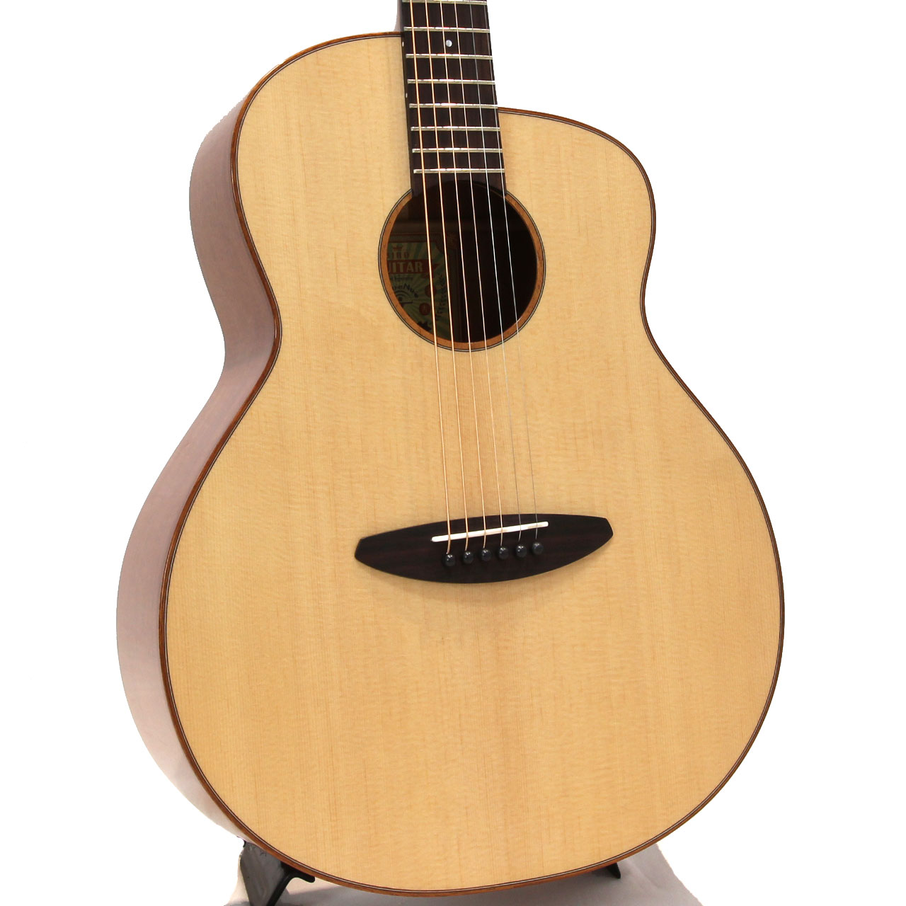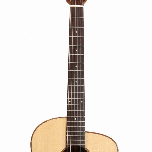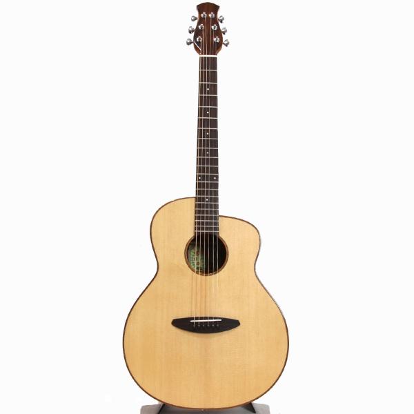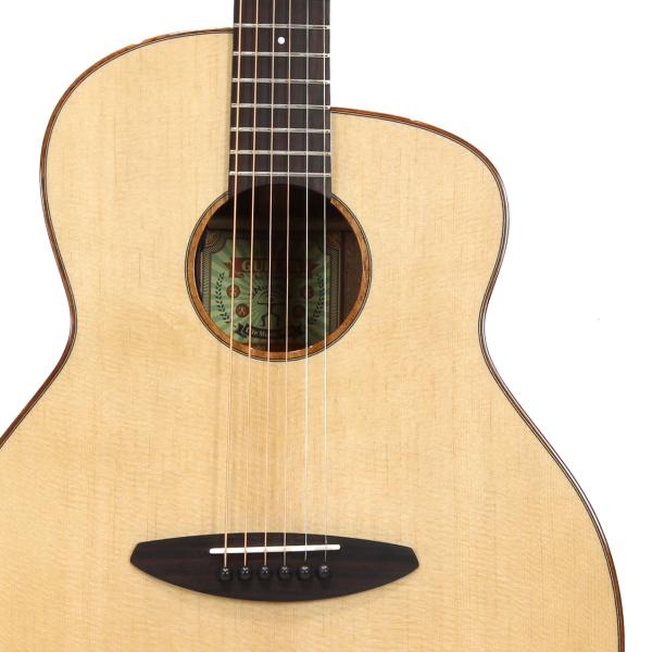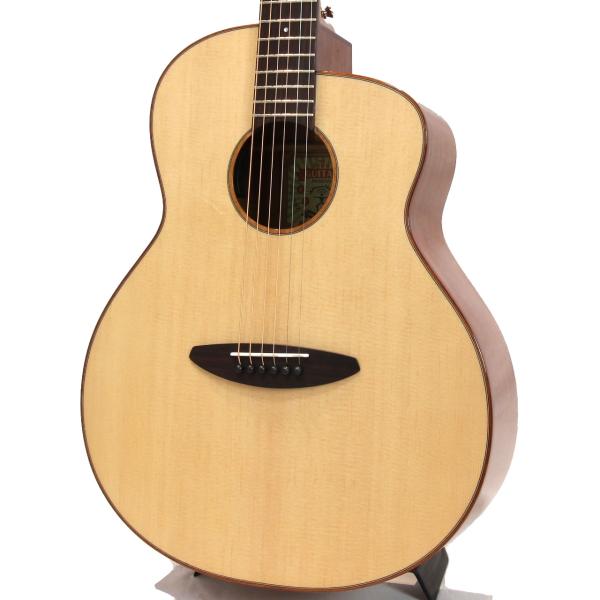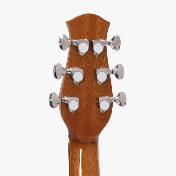 スペックはオーソドックスなスプルース単板トップ、マホガニー材サイド&バック、マホガニー材ネック、ローズウッド材指板&駒、牛骨ナット&サドル、44mmナット幅、650mmスケール、グロス・ボディ&グロス・ネック、Air Blueピックアップ搭載となっております。ロゴなしのヘッドは杉田健司氏デザインのハンドカットヘッドストックを採用し、この価格帯とは思えないハイエンドギターのような高級感があります。