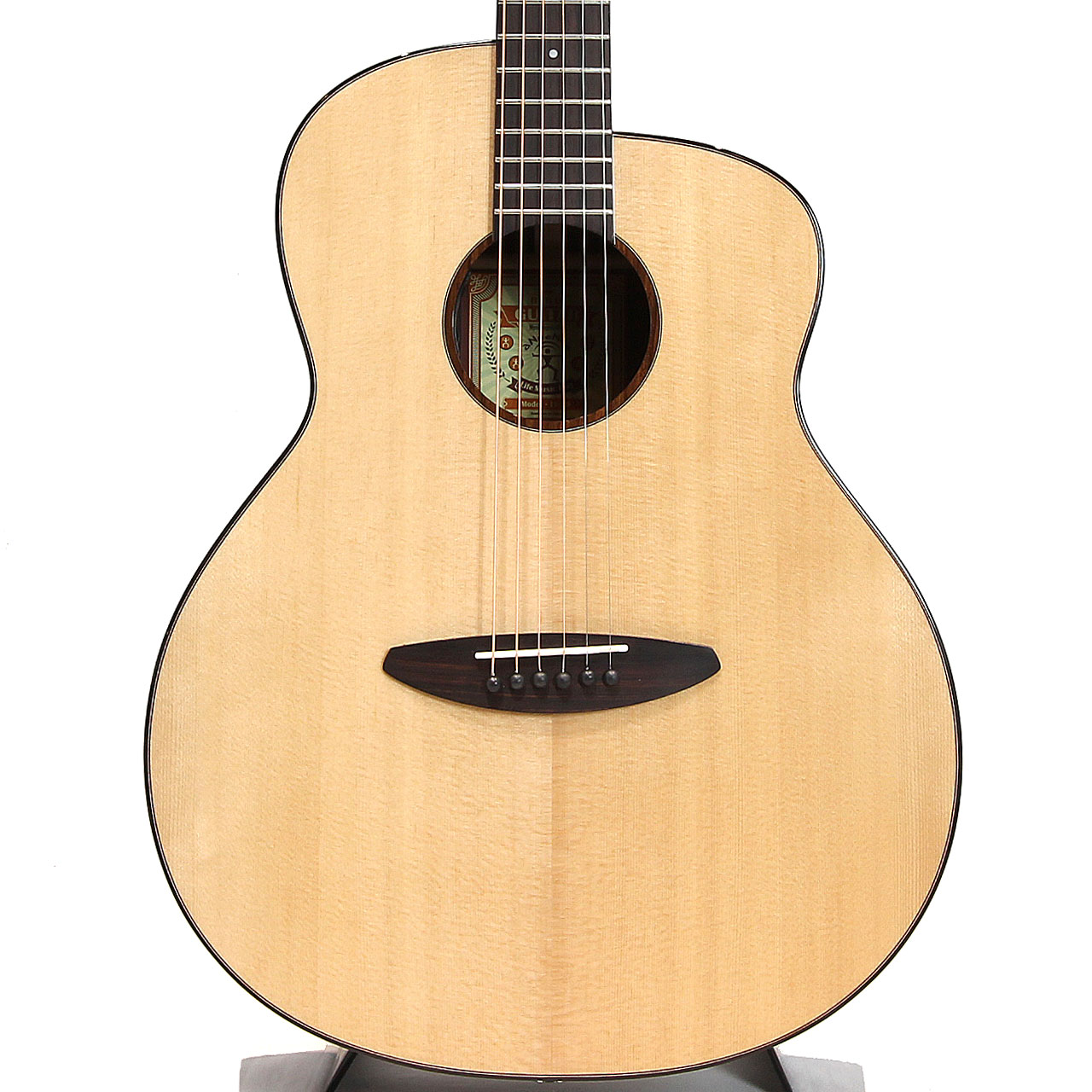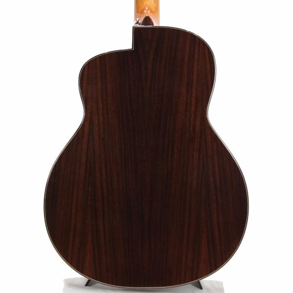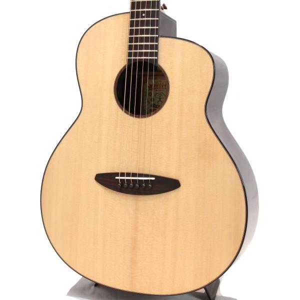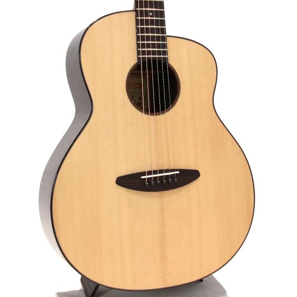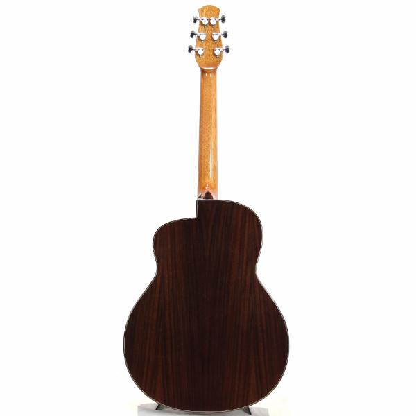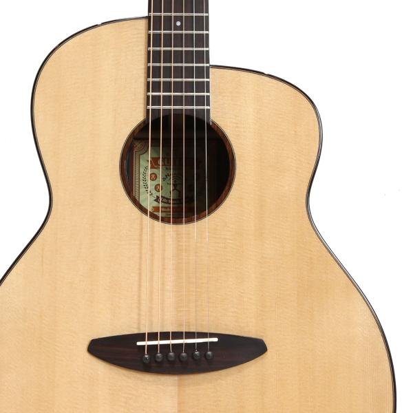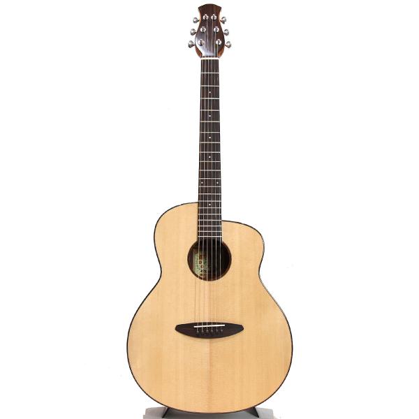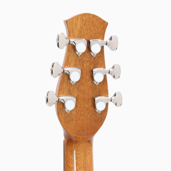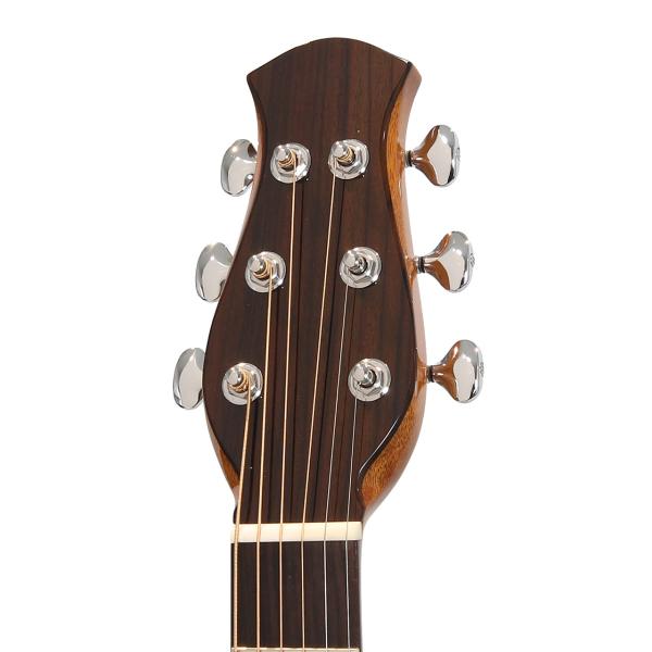 スペックはオーソドックスなスプルース単板トップ、ローズウッド材サイド&バック、マホガニー材ネック、ローズウッド材指板&駒、牛骨ナット&サドル、44mmナット幅、650mmスケール、グロス・ボディ&グロス・ネック、Air Blueピックアップ搭載となっております。ロゴなしのヘッドは杉田健司氏デザインのハンドカットヘッドストックを採用し、この価格帯とは思えないハイエンドギターのような高級感があります。