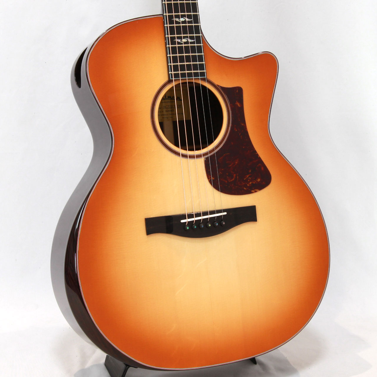 こちらはサウンドと演奏性のバランスの良さが魅力のグランド・オーディトリアム・ボディを基調としたAC Series。AC722CEはその中でも上位機種に位置し、豪華なエルボーコンターやサウンドポートといった現代的な仕様を取り入れた優れたエレアコモデルとなります。