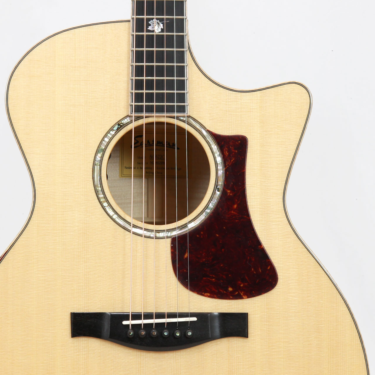 こちらはサウンドと演奏性のバランスの良さが魅力のグランド・オーディトリアム・ボディを基調としたAC Series。AC622CEは指板からヘッドにかけての美しいインレイワーク、ボディとネックに使用された美しいトラ杢のフレイムメイプルが特徴的なモデル。同じくフレイムメイプルで施された豪華なエルボーコンターやサウンドポートといった現代的な仕様を取り入れた優れたエレアコモデルとなります。