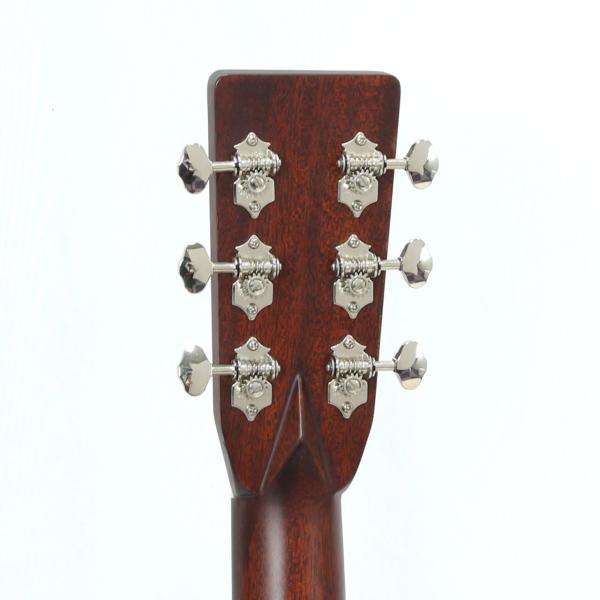 こちらはD-18スタイルで、サーモキュアド・シトカスプルー材トップ仕様のE6D-TC。サイドバック材には非常に美しいフィギュアードのマホガニーを使用した、見た目もとても美しいモデルです。