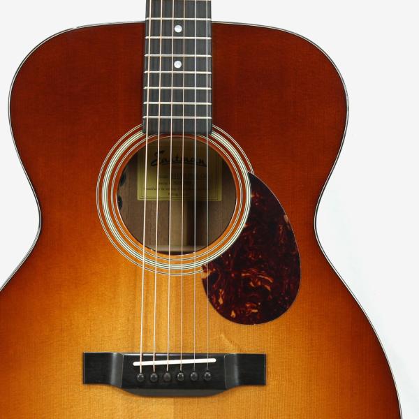 こちらはコンパクトで抱えやすい000スタイルで、サーモキュア加工が施されたシトカスプルー材単板トップにサペリ材の単板サイドバック仕様のE1-OM-DLX-GB。この価格帯で高級ギターと同じくオール単板のスペックを実現しており、高級感のあるグロスフィニッシュに渋かわいいゴールドバーストカラーが魅力の新商品です。