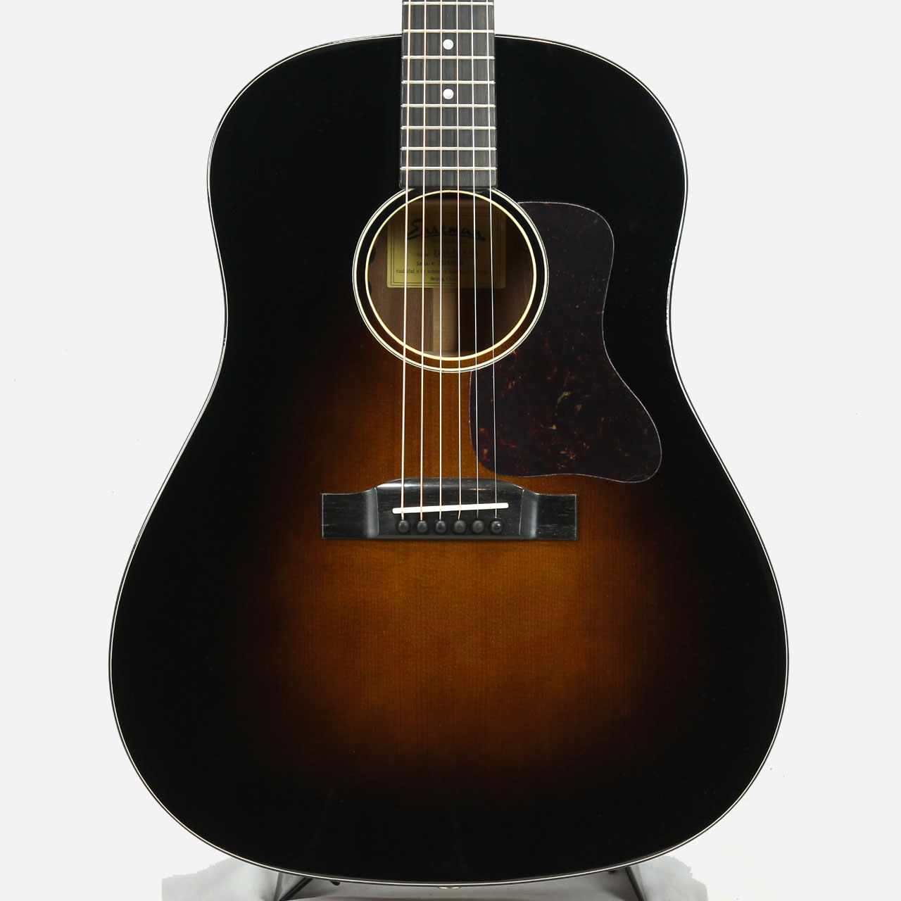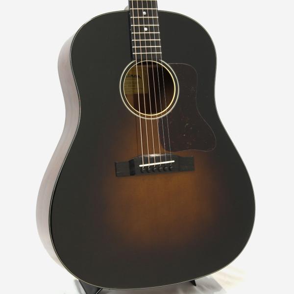 こちらは人気のラウンドショルダーJボディスタイルで、サーモキュア加工が施されたシトカスプルー材単板トップにサペリ材の単板サイドバック仕様のE1SS-DLX-SB。この価格帯で高級ギターと同じくオール単板のスペックを実現しており、高級感のあるグロスフィニッシュに黒味の強いサンバーストカラーが魅力のモデルです。