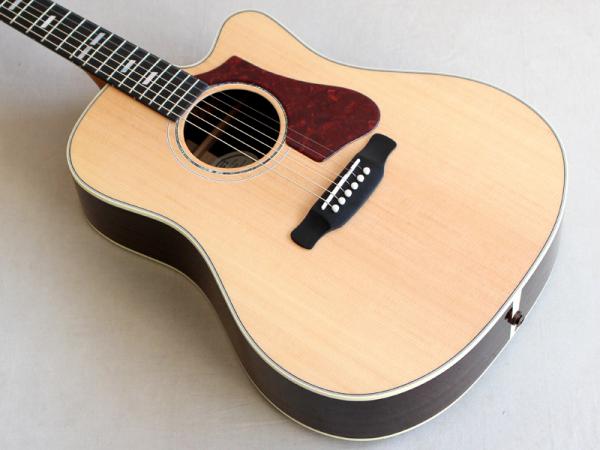 本器はギブソンには珍しい木材組み合わせのスプルース材TOP、ローズウッド材サイド&バックにスクエアショルダーボディを擁し、カッタウェイが施されております。