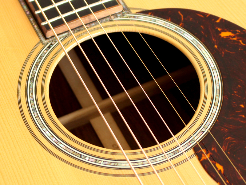 製作はマーティン社最高の技術によるハンドメイドでの組み上げとカスタムショップグレードと呼ばれる選定材が惜しみなく使用される、現代マーティンの最高峰”マーティンカスタムショップ”。膨大な敷地の僅かな一郭で、熟練の職人のみが配属を許される僅か10人程の精鋭集団。その仕上がりはもちろんスタンダードをあらゆる面で凌ぐ超一級品です。