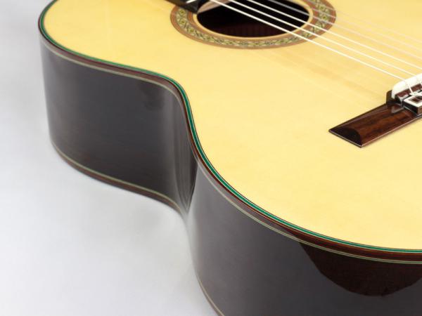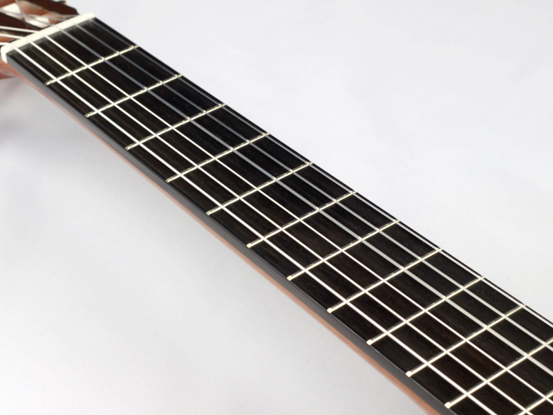 スプルースとローズウッドの伝統的な組み合わせで、非常に音量があり、豊かな響きと絶妙な音のバランスが魅力です。アランフェスギターは日本人の身体に合うよう、ネック形状をあらゆる角度から検証し製作されていますので、その演奏性の高さも魅力の一つと言えるでしょう。