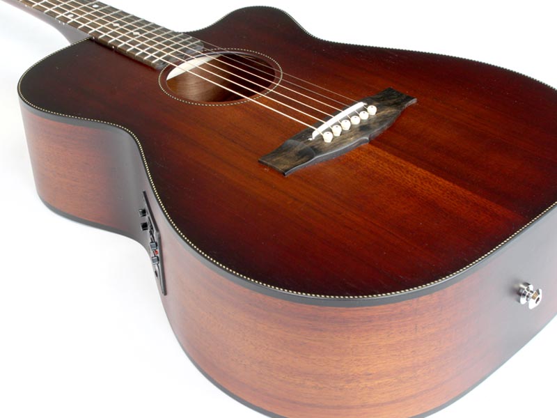 オールマホガニーで制作されたMシリーズがこの度廃盤となり、新たにオーストラリア原産の木材を使用して登場したのがこちらのブラックウッドシリーズ。オールマホに比べて音に厚みが有り、独特のパンチが有ります。音の芯がしっかりしていますので、フィンガースタイルでもピック弾きでもどちらでも良い相性です。