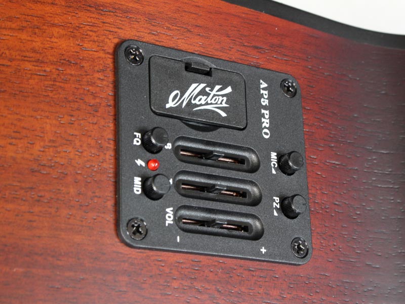 ピックアップシステムは「AP5 PRO」。限りなくクリアで透明感のあるマイクサウンドと力強いピエゾの存在感は演奏場所を問わずナチュラルなアコースティックサウンドを出力可能。